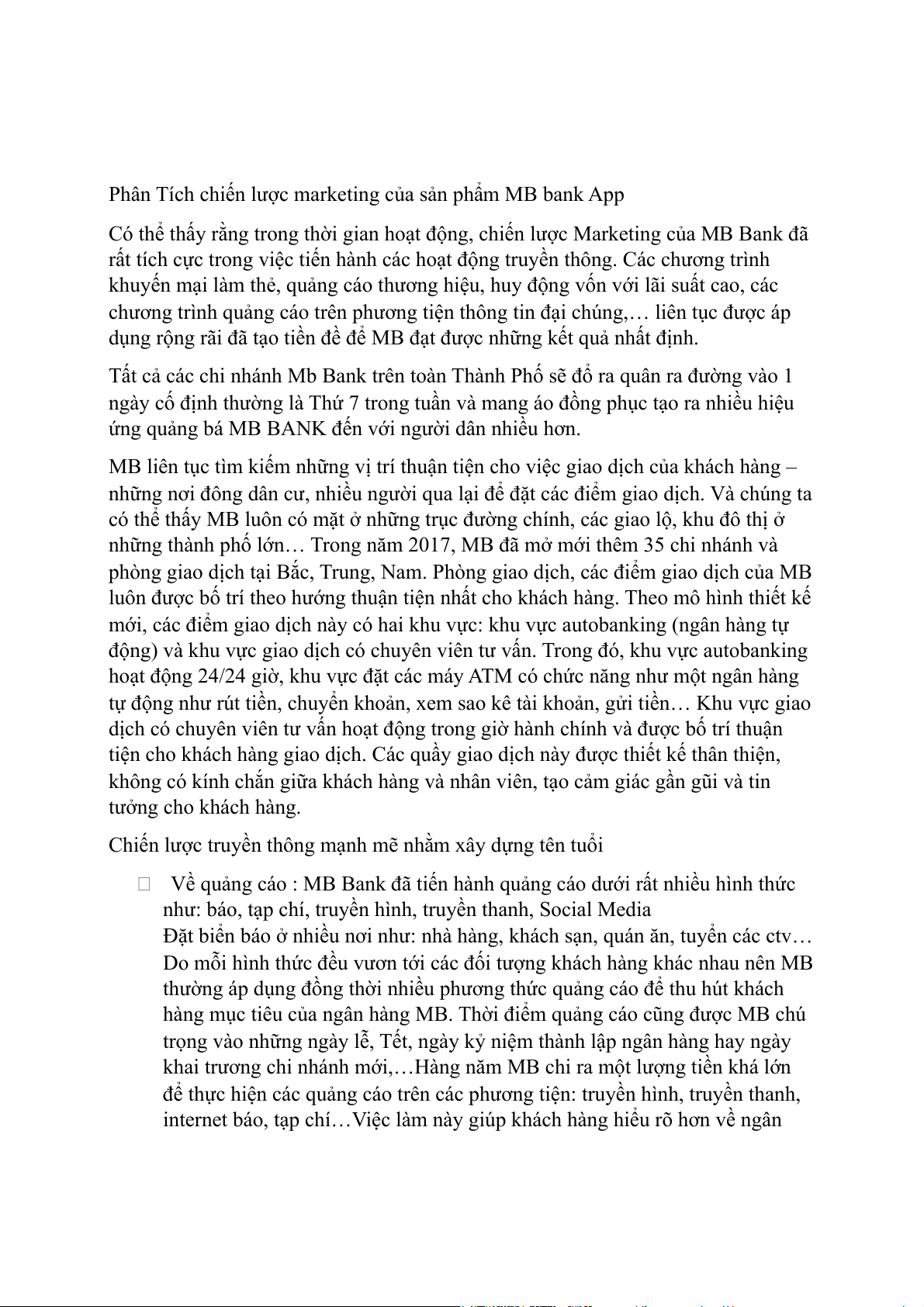 Phân Tích chiến lược marketing của sản phẩm MB bank App