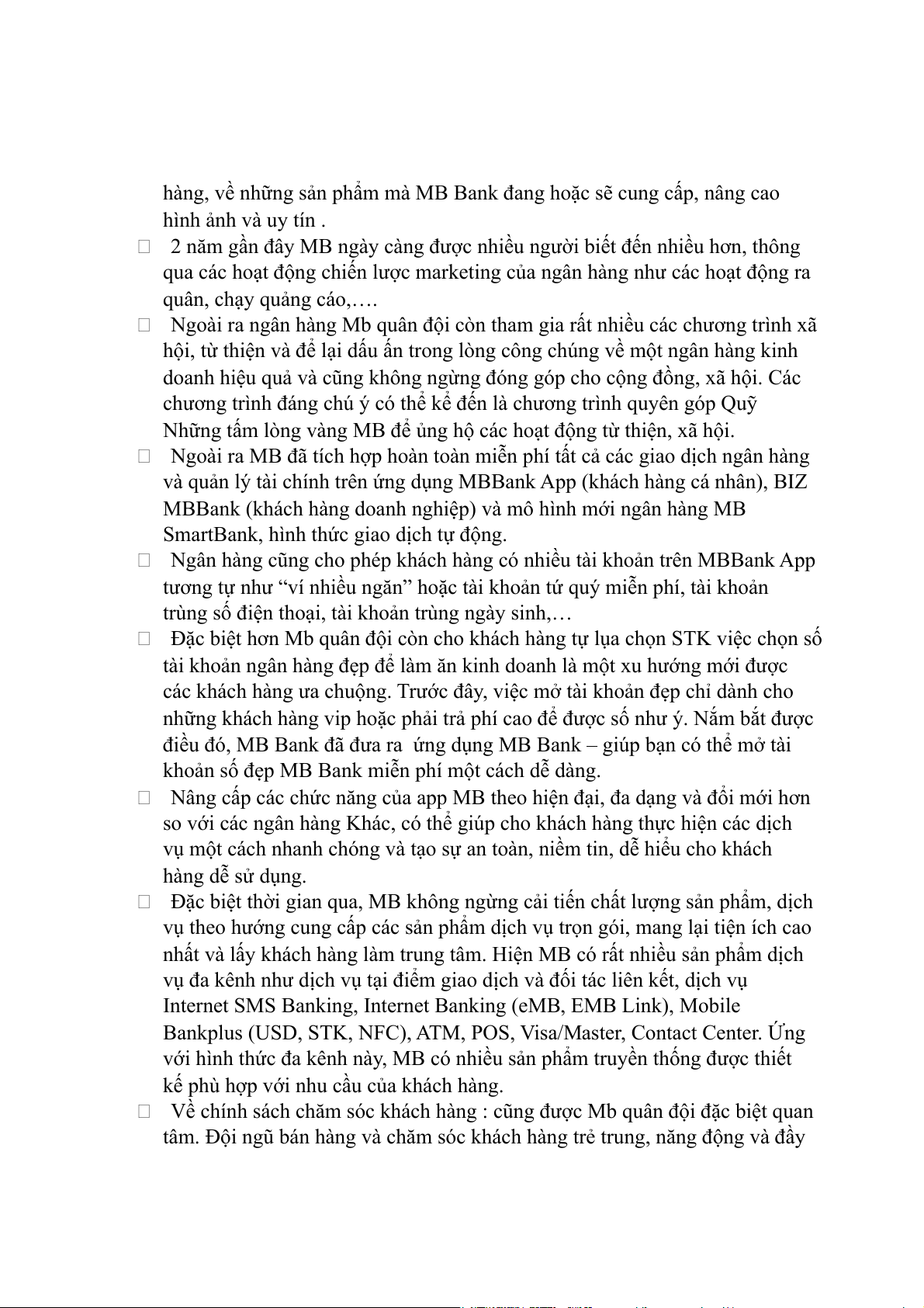 hàng, về những sản phẩm mà MB Bank đang hoặc sẽ cung cấp, nâng cao hình ảnh và uy tín .