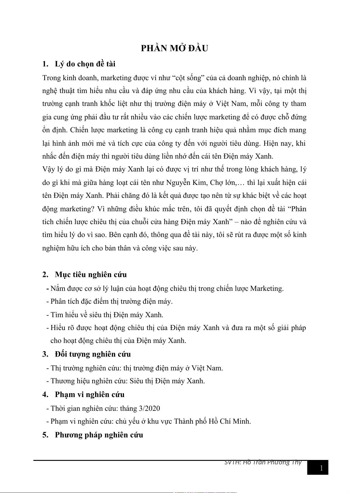 tích chiến lược chiêu thị của chuỗi cửa hàng Điện máy Xanh” – nào để nghiên cứu và