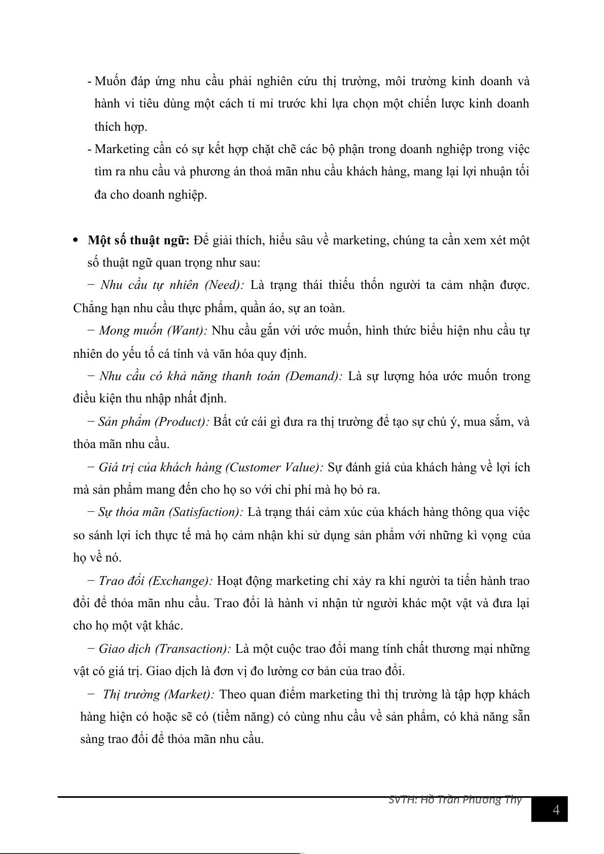 nhiều thay đổi. Dưới đây là 1 số quan điểm và khái niệm Marketing hiện đại của các