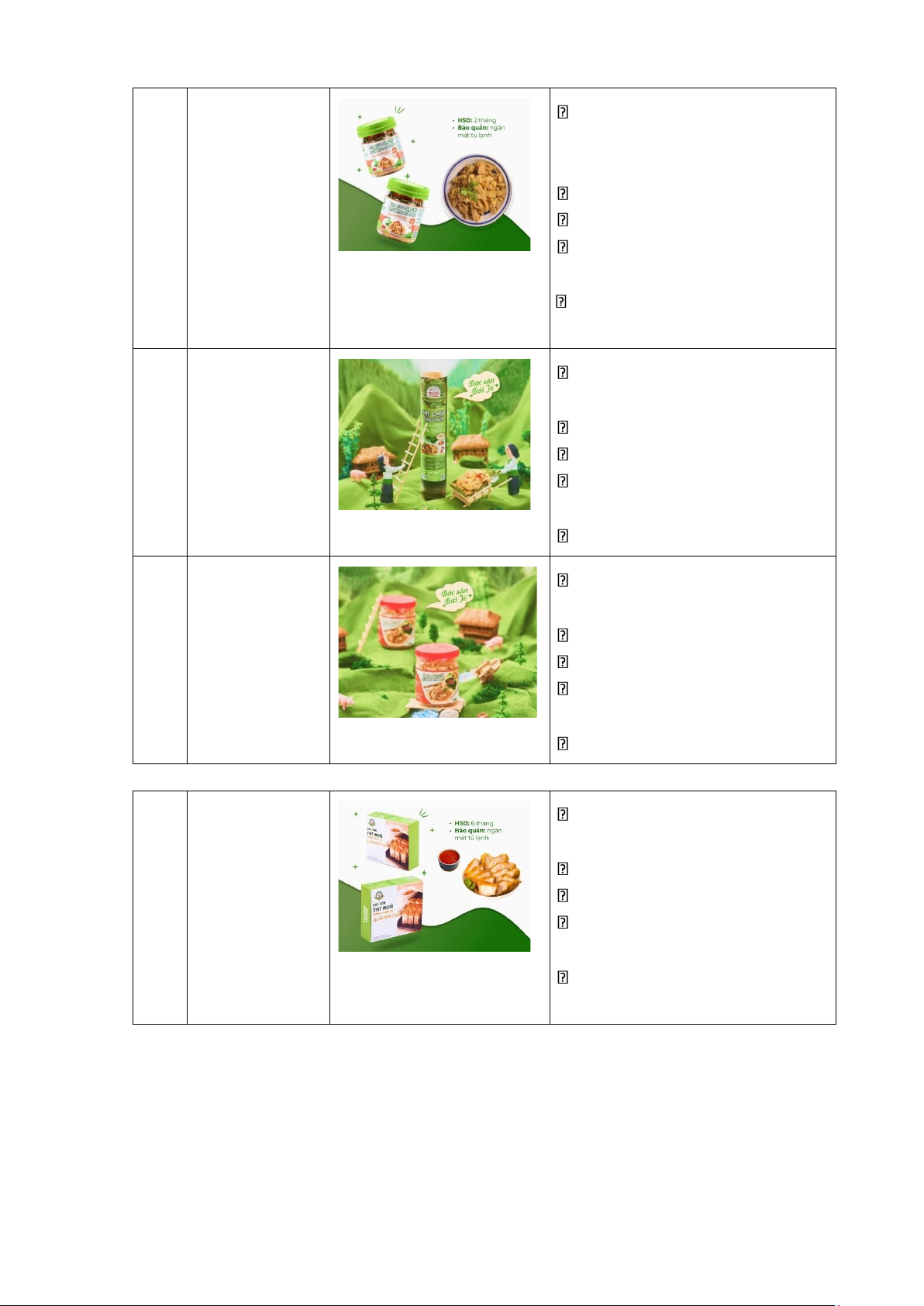 Thịt chua truyền thống, thịt chua tỏi ớt,…: đóng trong hộp nhựa, bên trongđóng màng seal. •