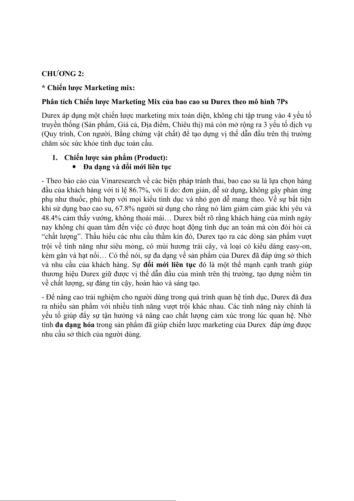 Phân tích Chiến lược Marketing Mix của bao cao su Durex theo mô hình 7Ps