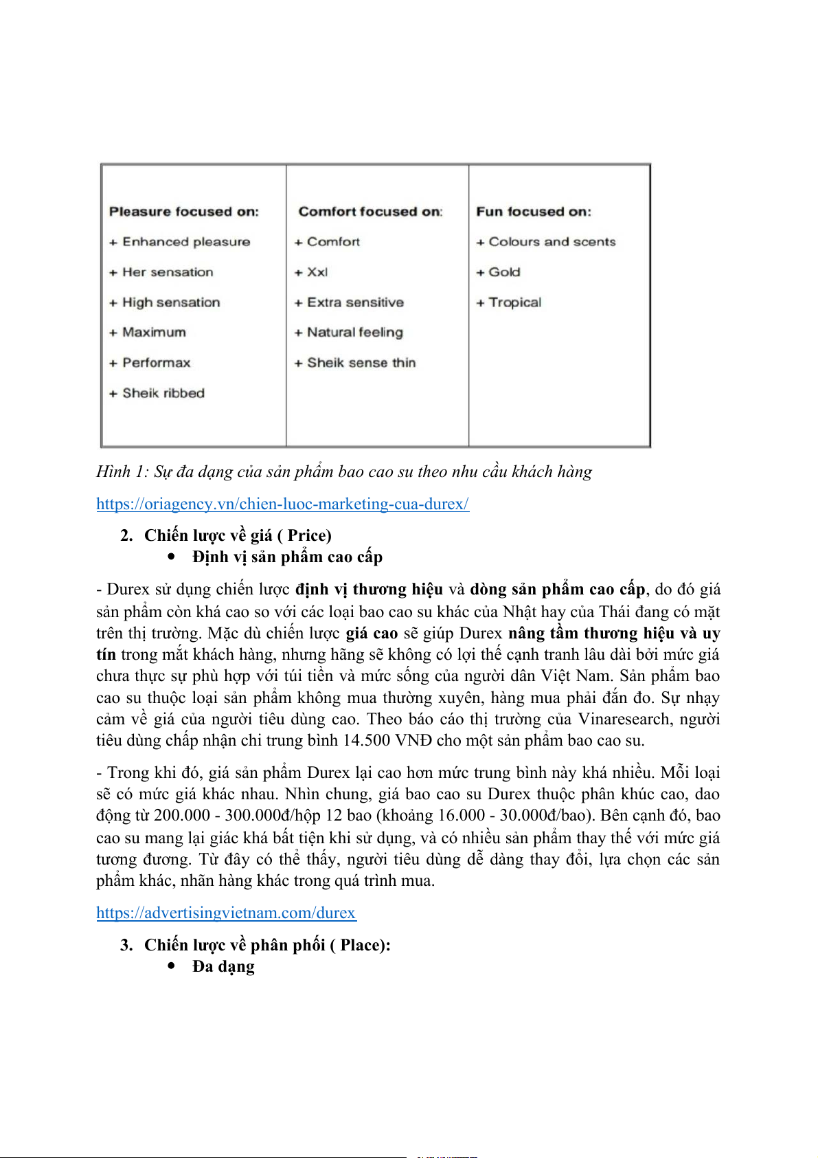 trên thị trường. Mặc dù chiến lược giá cao sẽ giúp Durex nâng tầm thương hiệu và uy