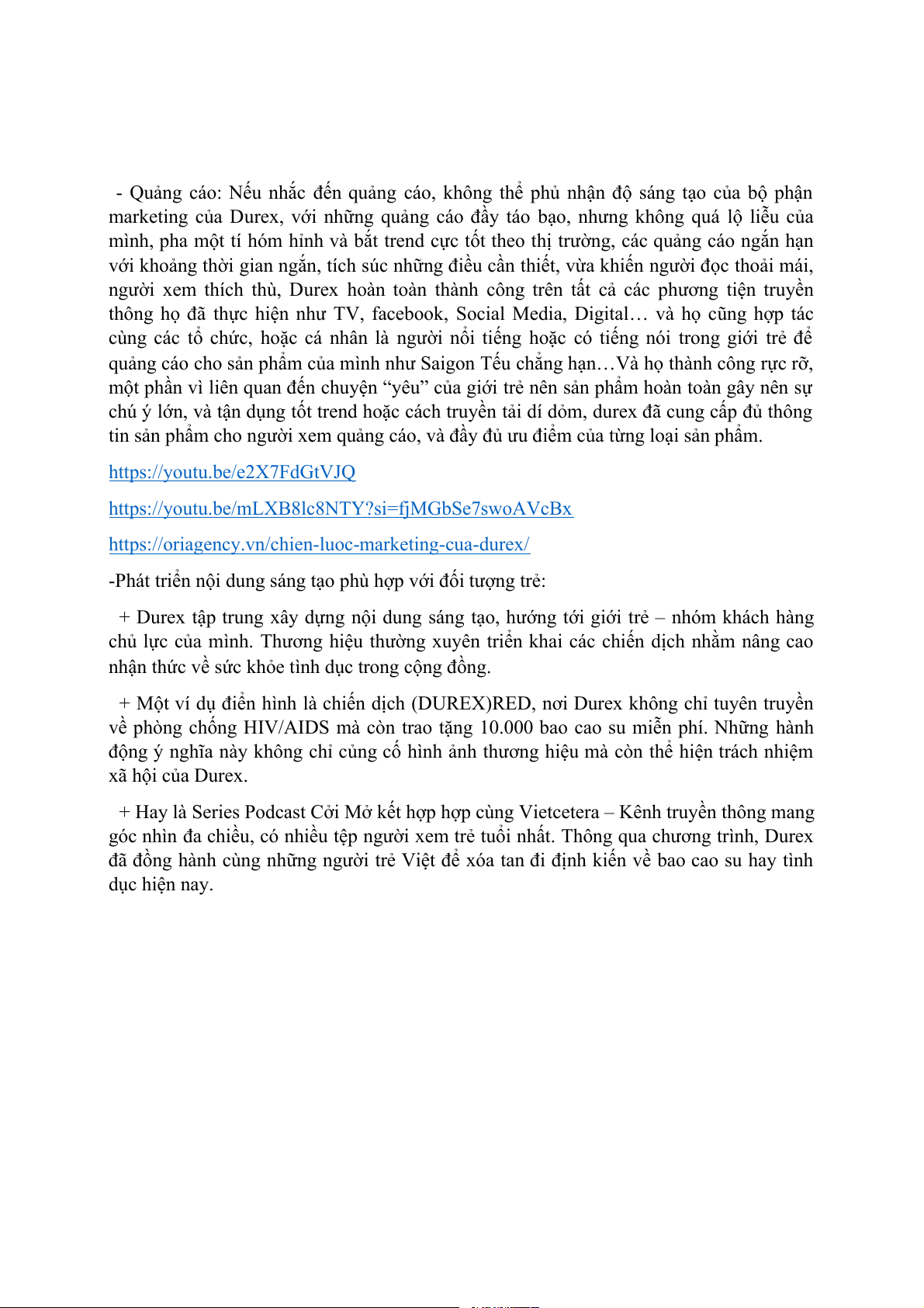 + Tại thị trường Việt Nam: Chiến lược marketing của Durex trên toàn cầu là hướng tới