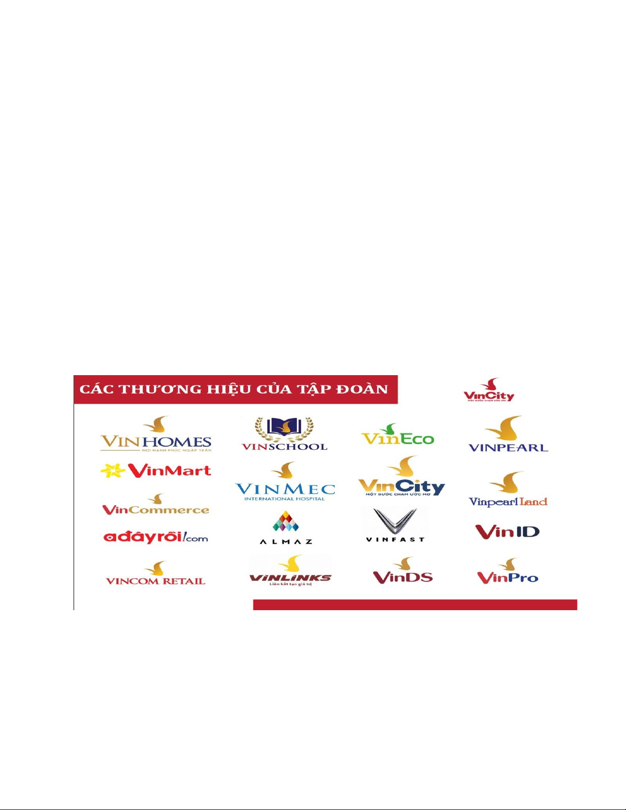 cốt lõi của tập đoàn với 2 thương hiệu khởi đầu là Vincom và Vinpearl. Năm 2012, tạp chí lOMoAR cPSD| 61178690