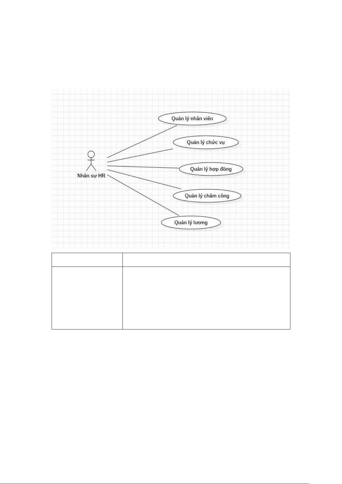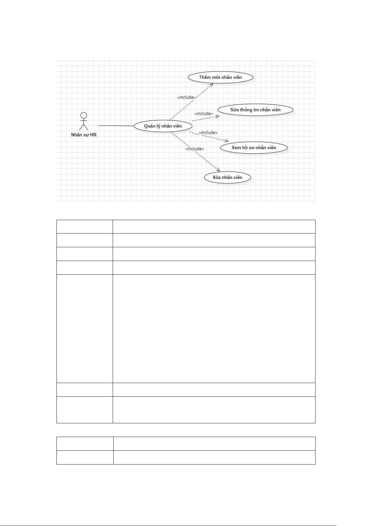 * Đặc tả use case chức năng Thêm nhân viên Tên usecase Thêm nhân viên Actor HR (Nhân sự) Mô tả
