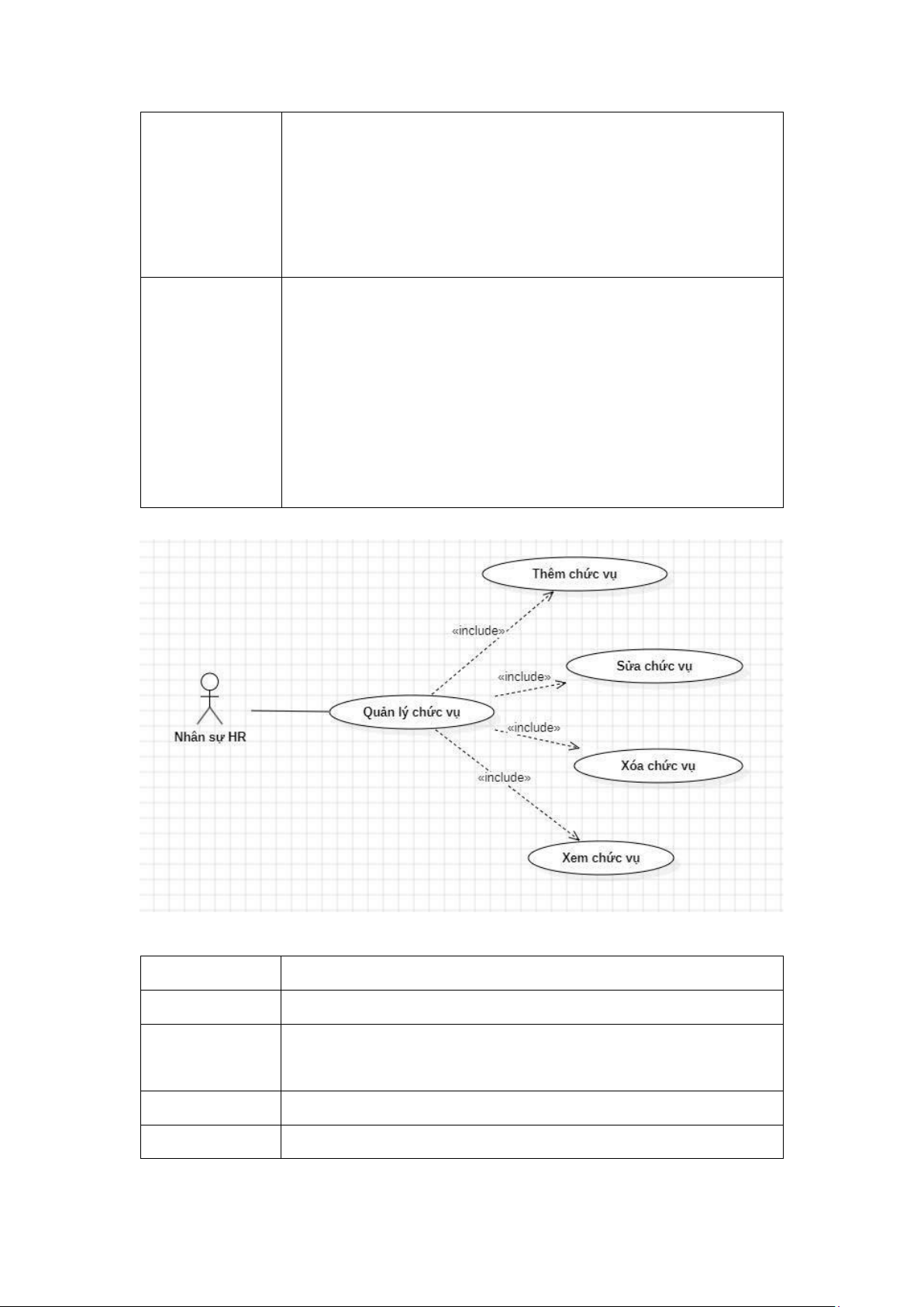 * Đặc tả use case chức năng Thêm chức vụ Tên usecase Thêm chức vụ Actor HR (Nhân sự) Mô tả