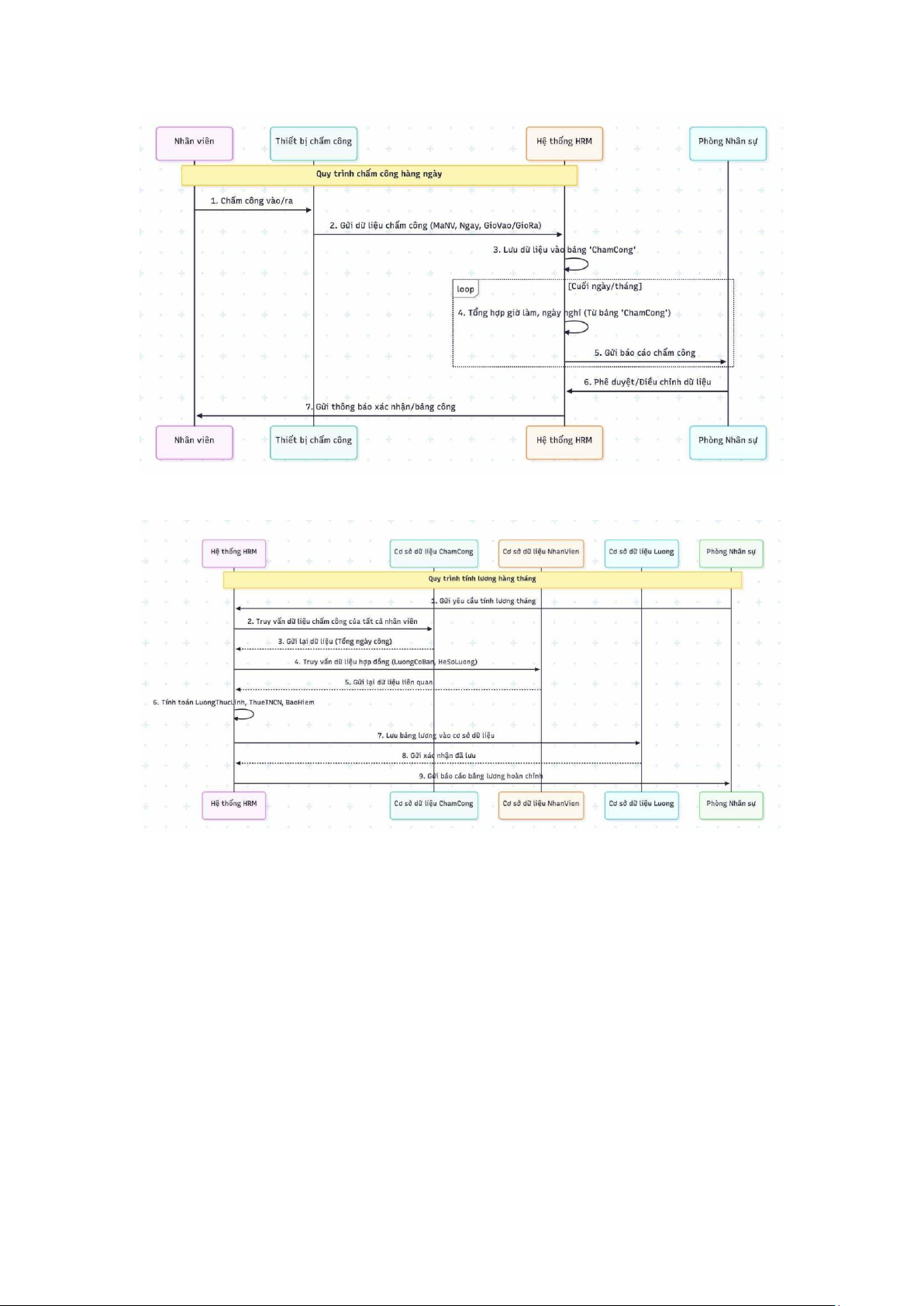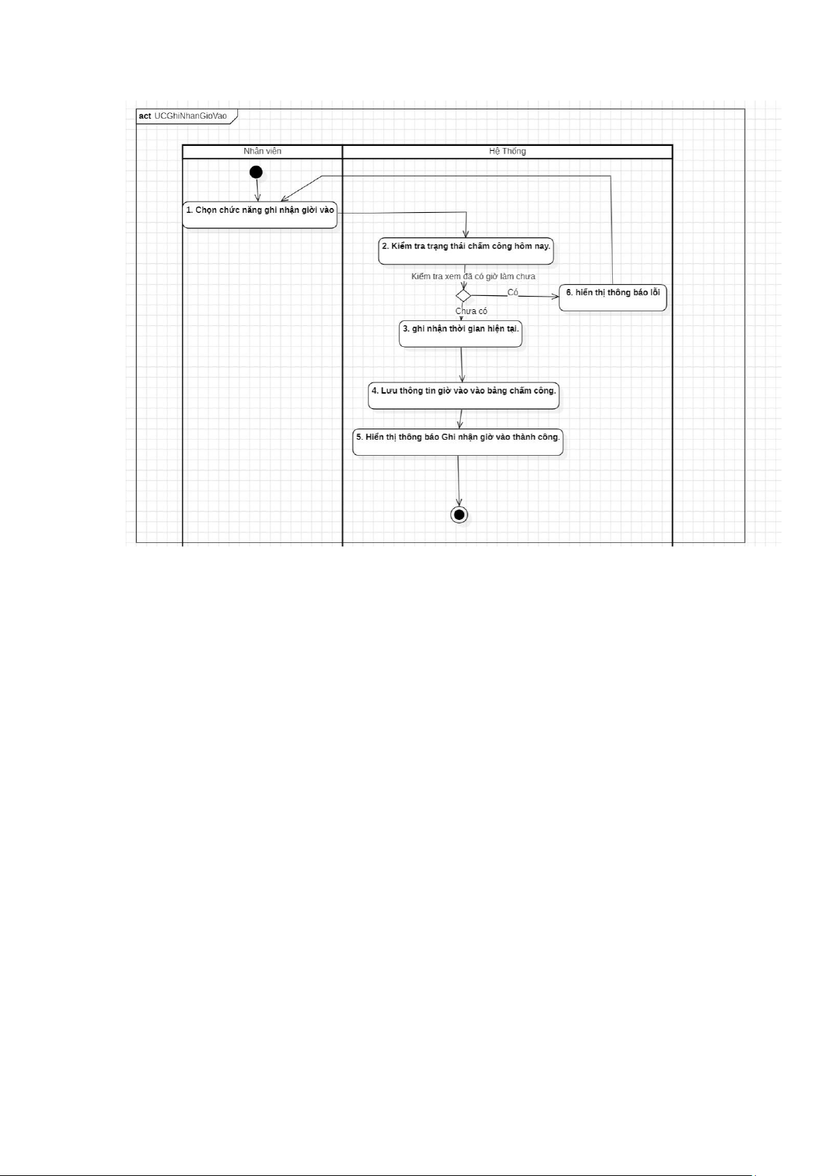 6. Hệ thống kiểm tra dữ liệu → hợp lệ → lưu vào bảng ChamCong.