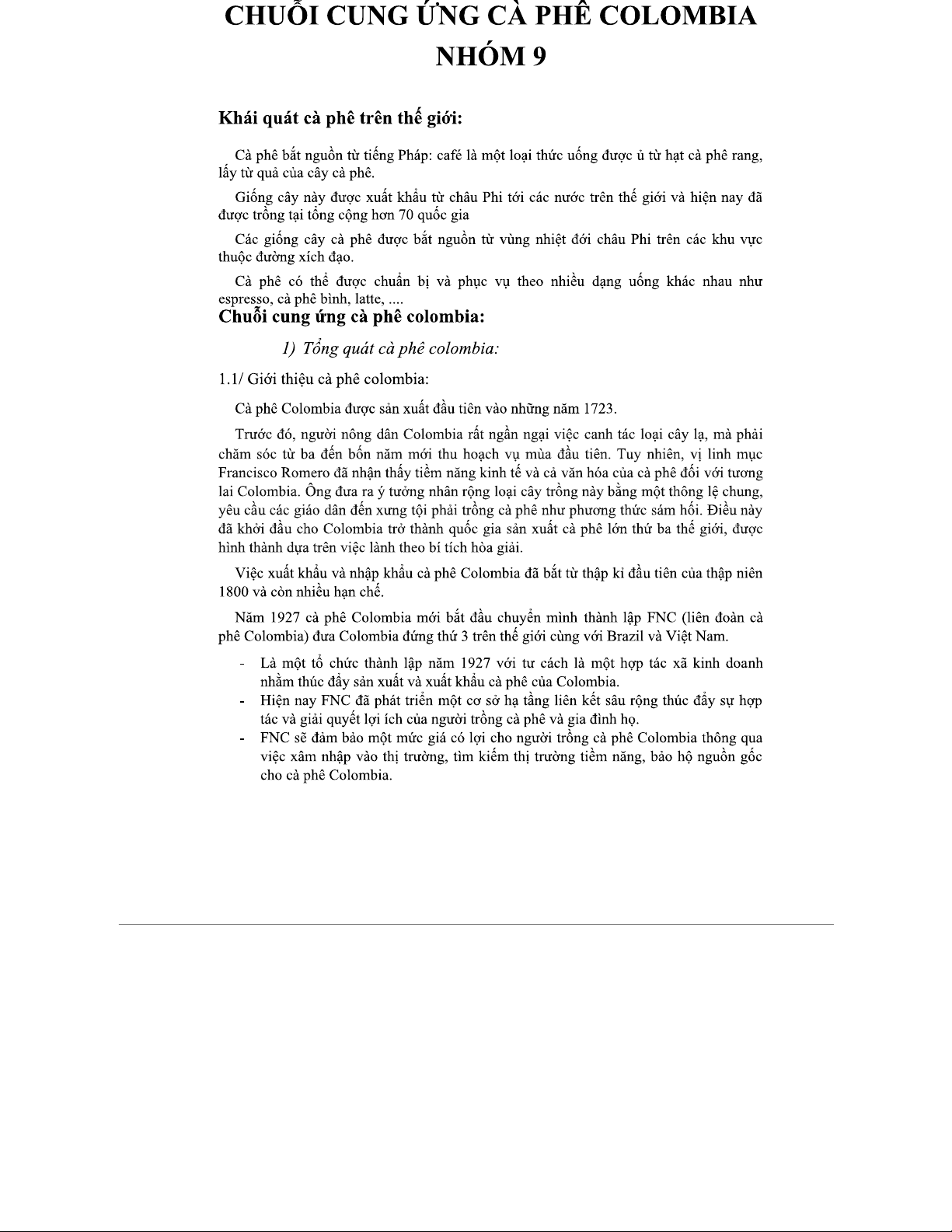 Phân tích chuỗi cung ứng cà phê Colombia - Nhóm 9