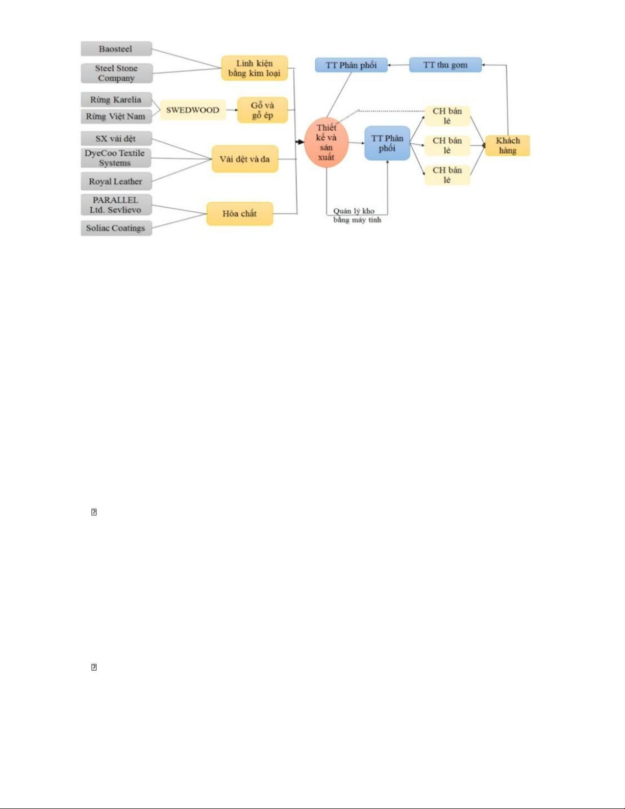 cung ứng, từ nhà cung cấp nguyên liệu, các nhà thầu phụ đến các trung gian