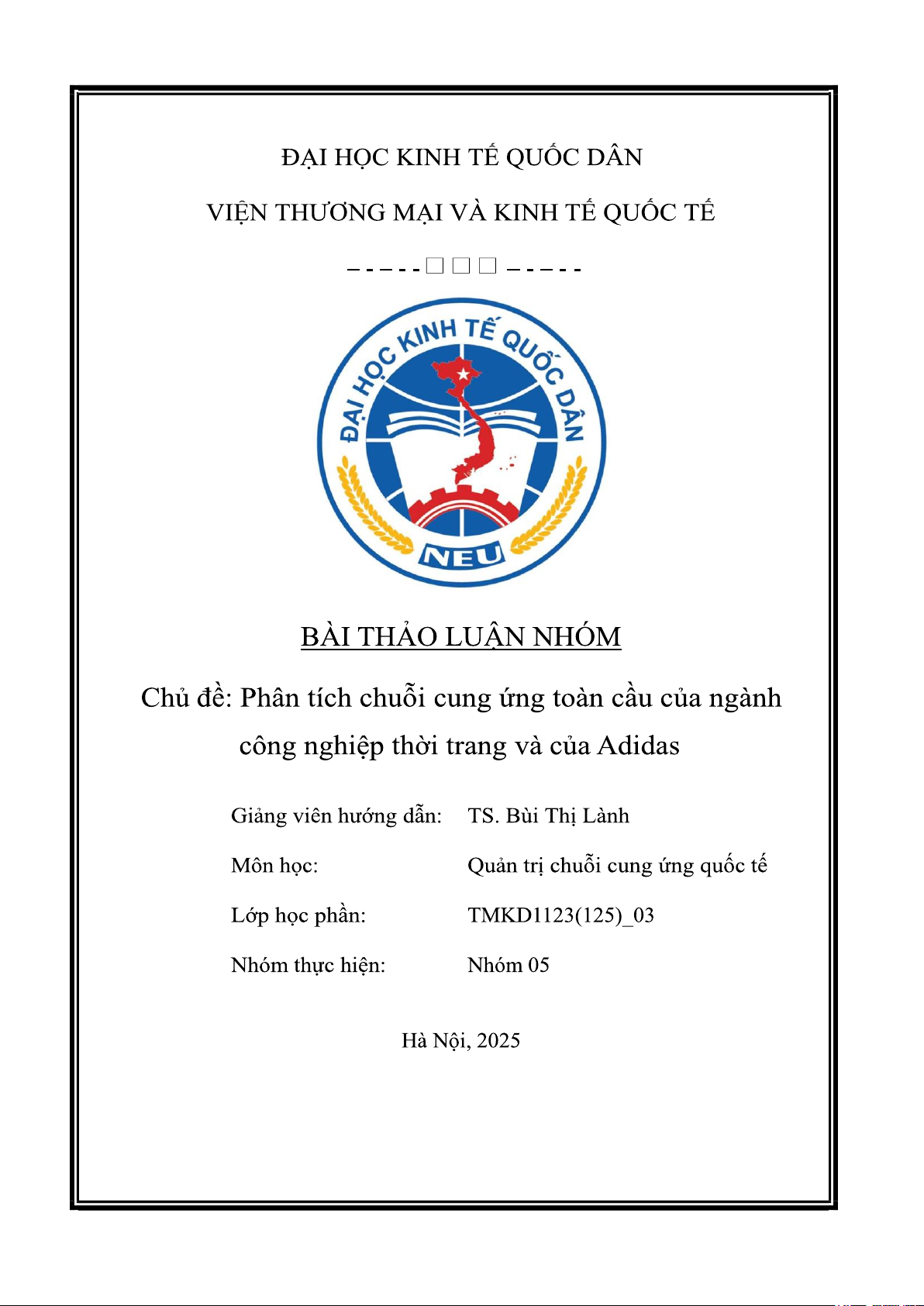 Quản trị chuỗi cung ứng quốc tế Lớp học phần: TMKD1123(125)_03 Nhóm thực hiện: Nhóm 05 lOMoAR cPSD| 58950985 DANH SÁCH THÀNH VIÊN STT Họ và tên MSV 1 Nguyễn Hoàng Mai 11234126 2 Tạ Tiến Anh 11235692 3 Tăng Thế Đạt 11232891 4 Nguyễn Trần Đan Lê 11232919 5 Trần Hà Phương 11225311 6 Nguyễn Thị Minh Thu 11226048 7 Phùng Lê Thanh Trà 11232973 lOMoAR cPSD| 58950985 MỤC LỤC