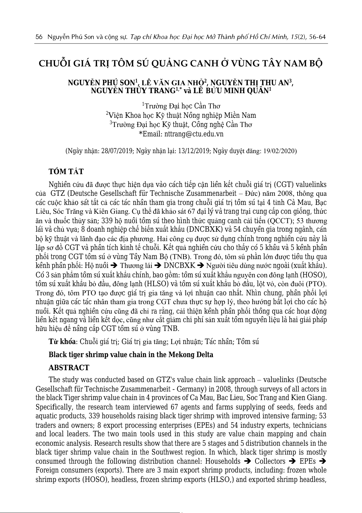 (Ngày nhận: 28/07/2019; Ngày nhận lại: 13/12/2019; Ngày duyệt đăng: 19/02/2020) TÓM TẮT
