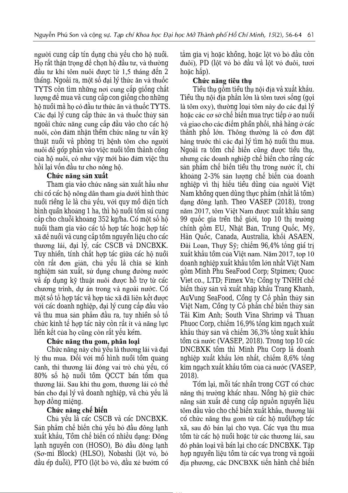 Nguyễn Phú Son và cộng sự. Tạp chí Khoa học Đại học Mở Thành phố Hồ Chí Minh, 15(2), 56-64 57