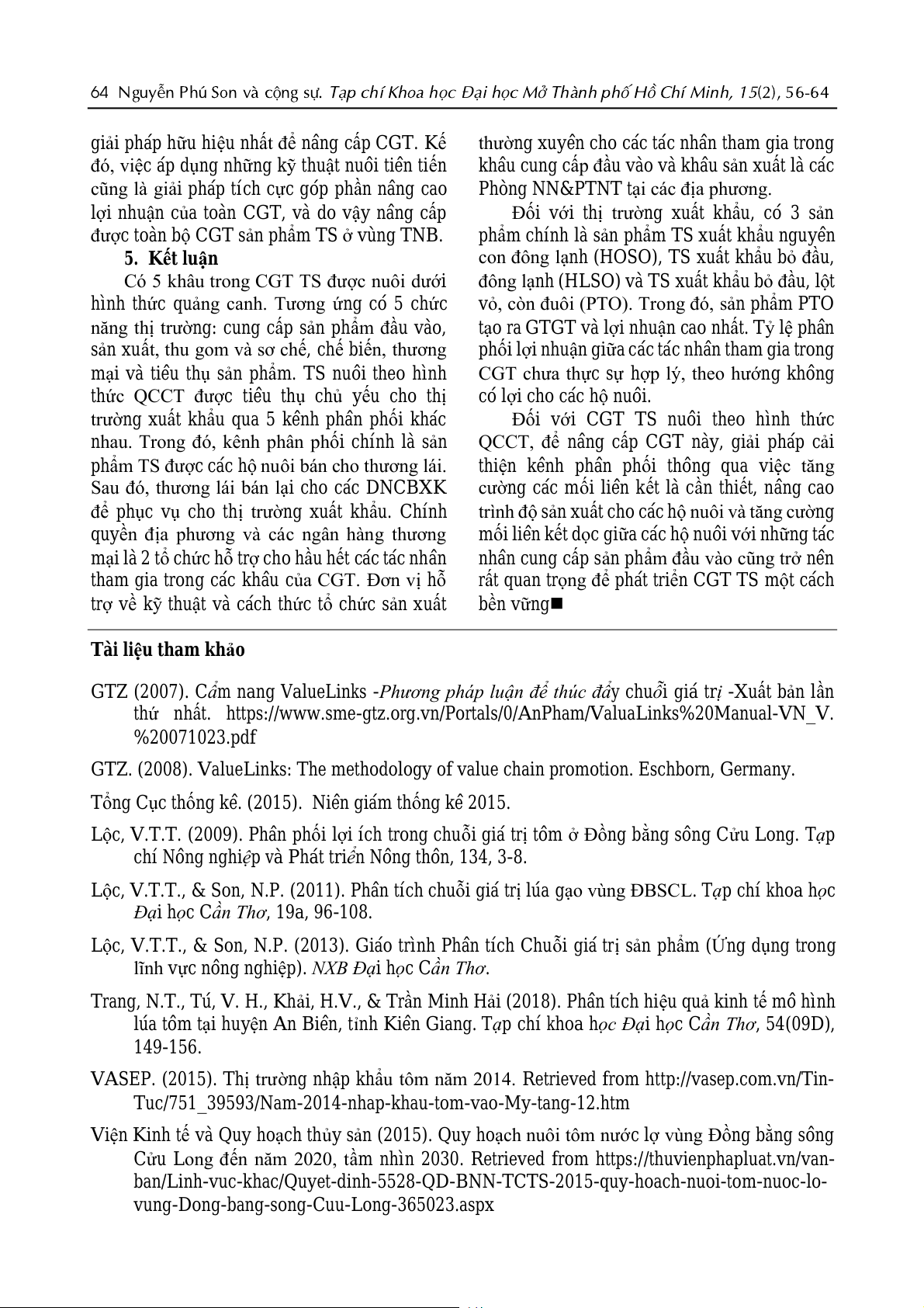 64 Nguyễn Phú Son và cộng sự. Tạp chí Khoa học Đại học Mở Thành phố Hồ Chí Minh, 15(2), 56-64