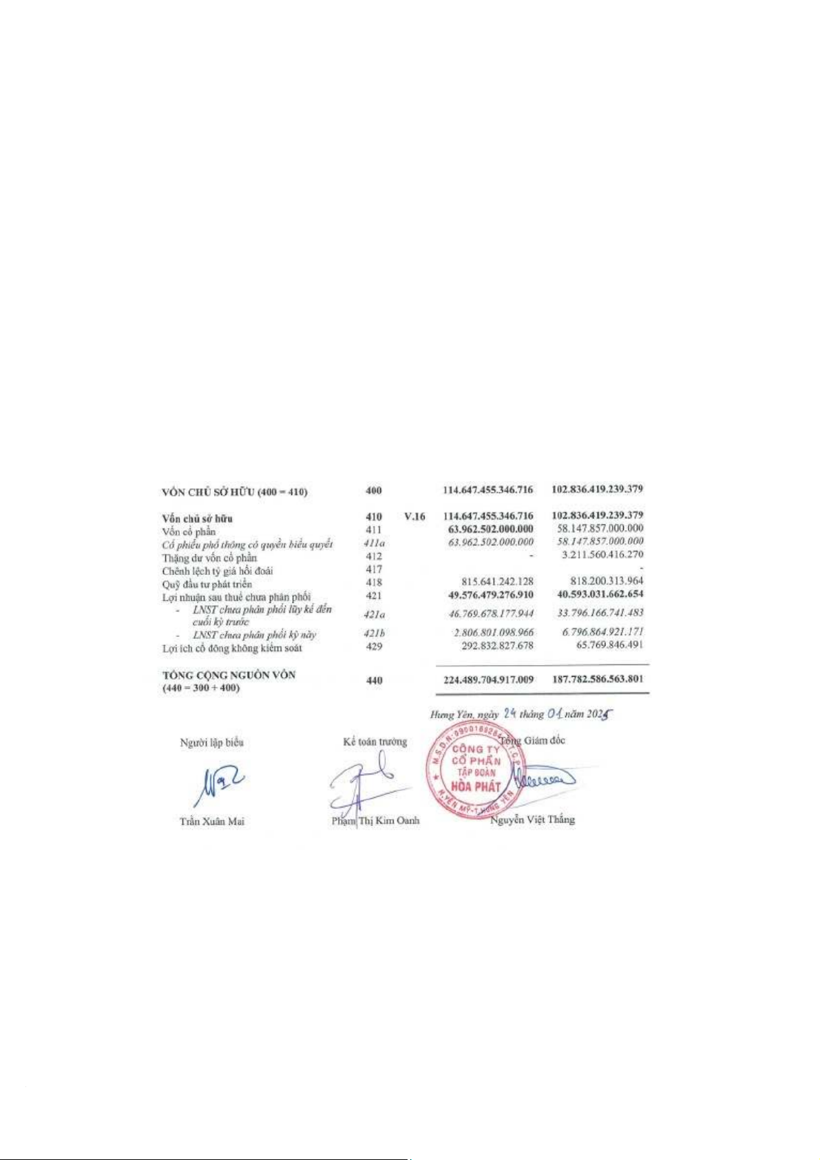 Tổng vốn chủ sở hữu của Tập đoàn Hòa Phát cuối năm 2023 đạt 102.836 nghìn