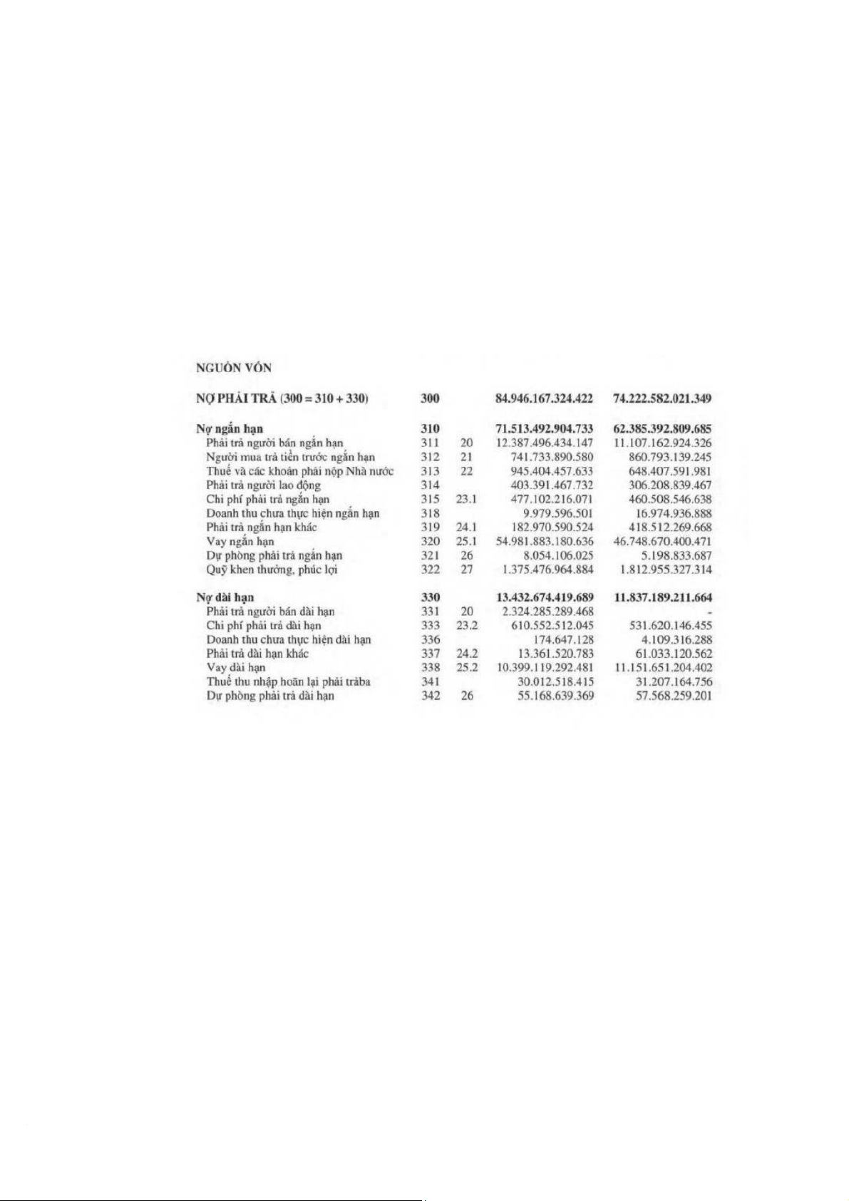 * Nợ phải trả: