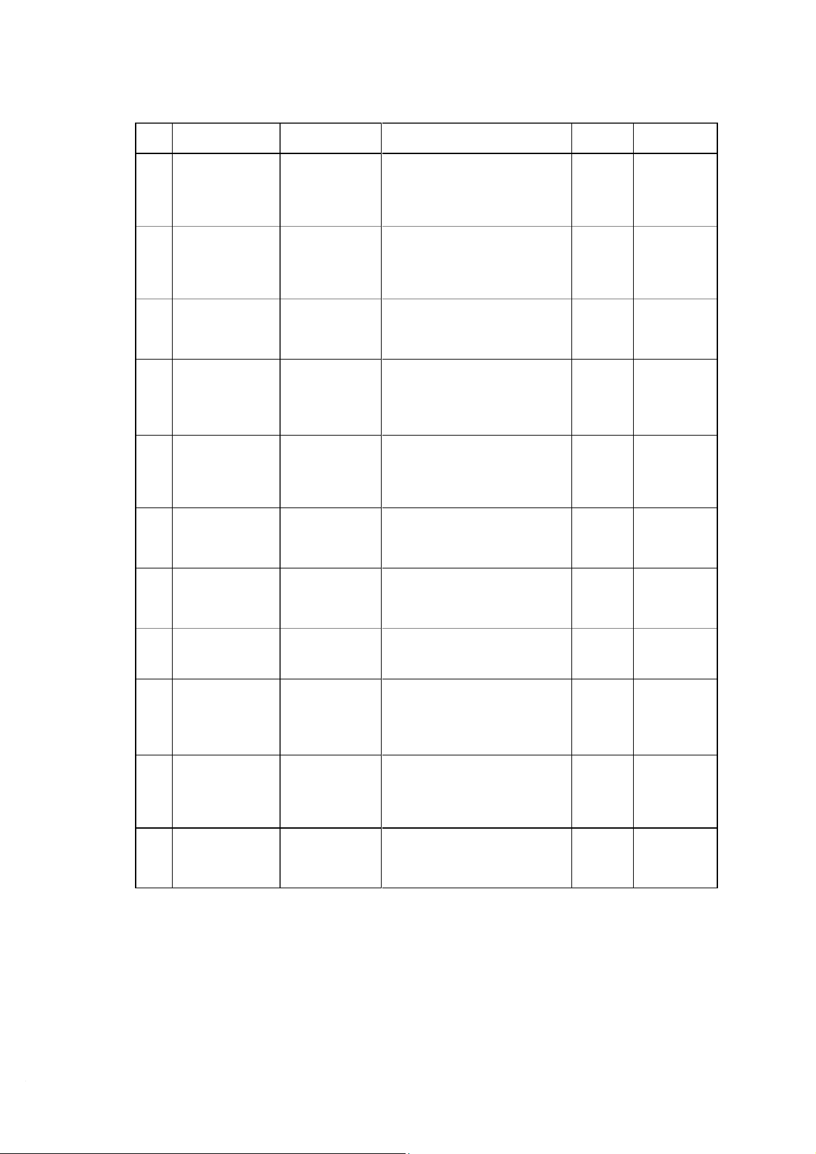 BẢNG ĐÁNH GIÁ THÀNH VIÊN STT HỌ TÊN MSV NHIỆM VỤ ĐIỂM CHỮ KÝ Phạm Ngọc - Nội dung 2.2.1 và 21 Ánh (Nhóm 23D120007 2.2.2 trường) - Phản biện - Nội dung 2.2.3 và 22 Đinh Thị Ngọc 2.2.4 Bích 22D121013 - Word - Nội dung 2.1.1 23 Đinh Trần Ngọc Bích 23D120106 - Thuyết trình - Nội dung 2.3 24 Lưu Thị Linh Chi 23D120058 - Thuyết trình - Nội dung 2.1.2 và 25 Phạm Thị Linh 2.1.3 Chi 22D160037 - Phản biện - Nội dung 1.2 26 Bùi Thị Kim Chúc 23D120008 - Phản biện 27 Hoàng Phương Dung 23D120060 - Nội dung 1.1 - Slide 28 Nguyễn Phương Dung 23D100161 - Nội dung 3.4 và 3.5 - Phản biện - Nội dung 3.1.1 và 29 Phạm Ngọc 3.1.2 Duyên 23D120061 - Phản biện - Nội dung 3.1.3; 30 Bùi Hoàng 3.1.4 và 3.1.5 Anh Dũng 23D100060 - Phản biện - Nội dung 3.2 114 Nguyễn Hải Yến 23D107174 - Slide LỜI MỞ ĐẦU
