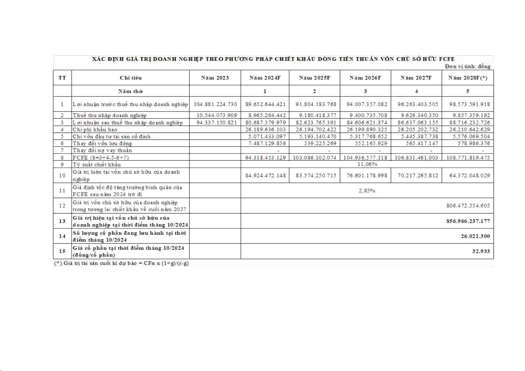 PHẦN 4: ĐỊNH GIÁ THEO PHƯƠNG PHÁP CHIẾT KHẤU DÒNG TIỀN THUẦN VỐN CHỦ SỞ HỮU (FCFE)