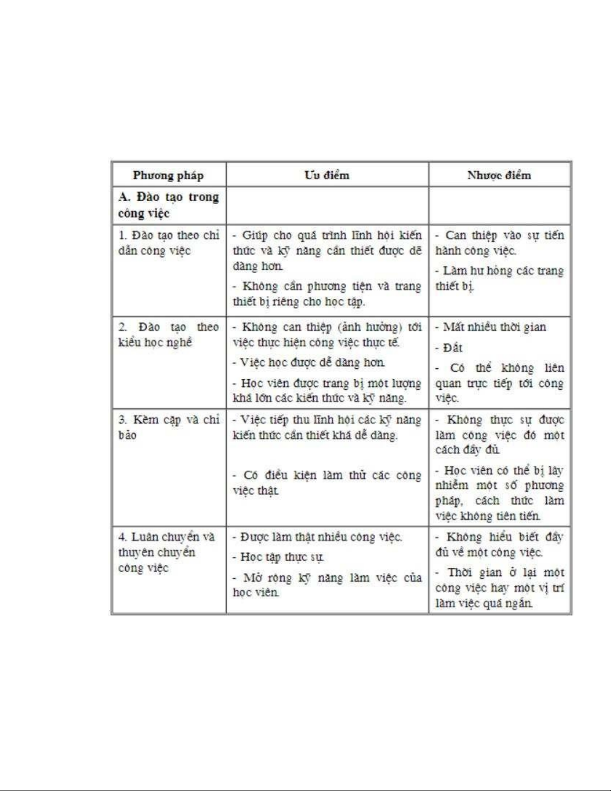 Ưu điểm: Tìm hiểu sâu về công việc - Nhược điểm: Tốn thời gian.