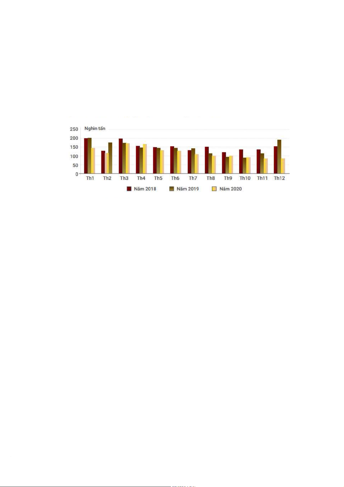 Hình 6. Biểu đồ thể hiện lượng cà phê xuất khẩu qua các tháng giai đoạn 2018–2020.