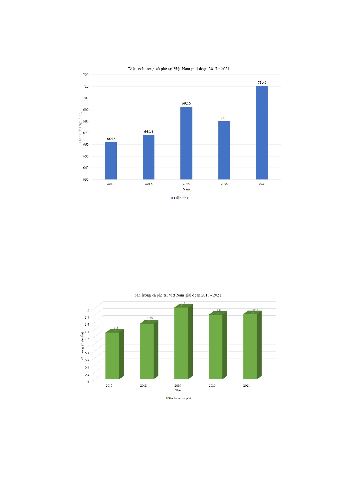 Hình 3. Biểu đồ thể hiện diện tích trồng cà phê tại Việt Nam giai đoạn 2017–2021.