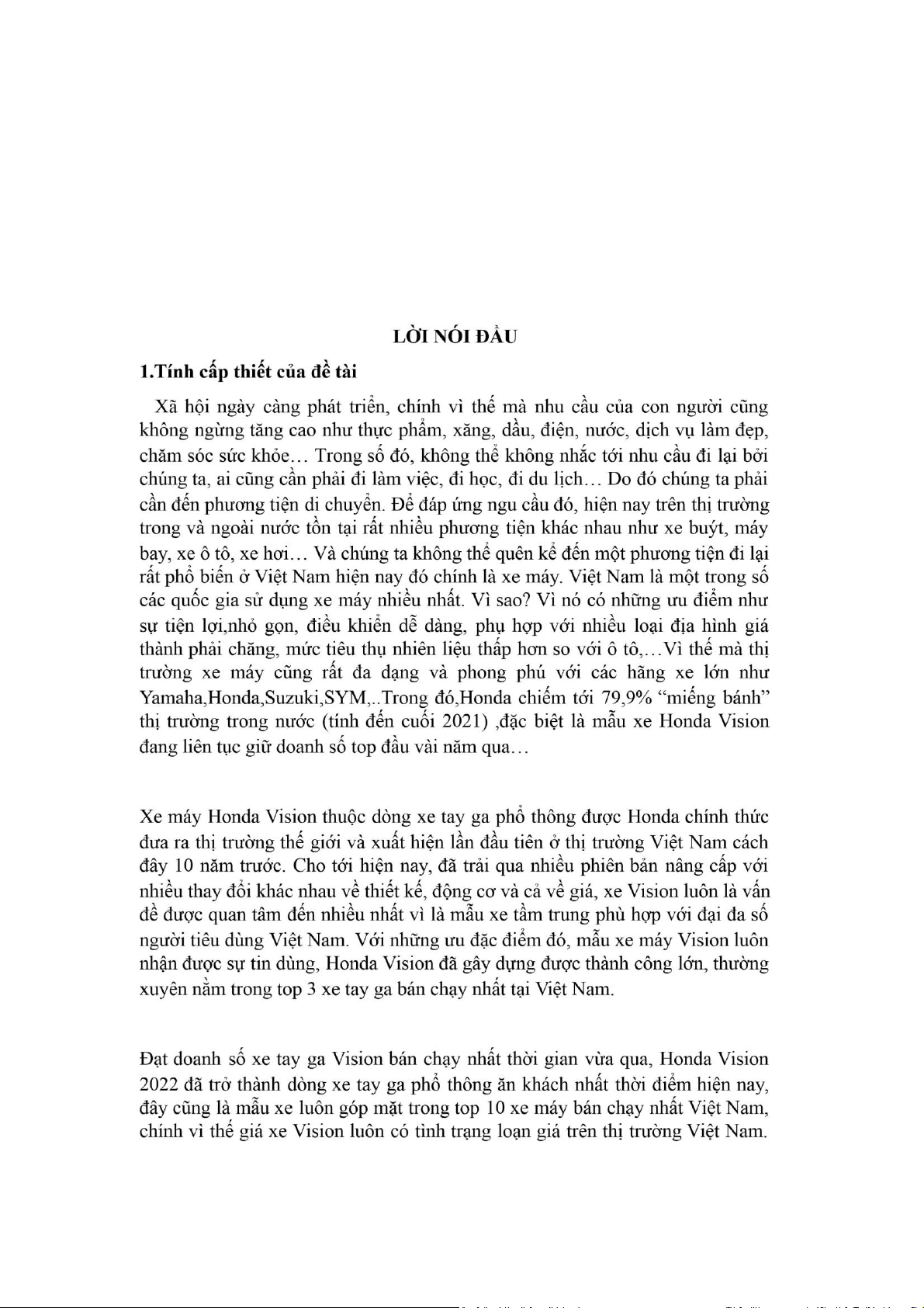 một “người con ưu tú” của hãng , Honda Vision chiếm một tỉ trọng lớn , được