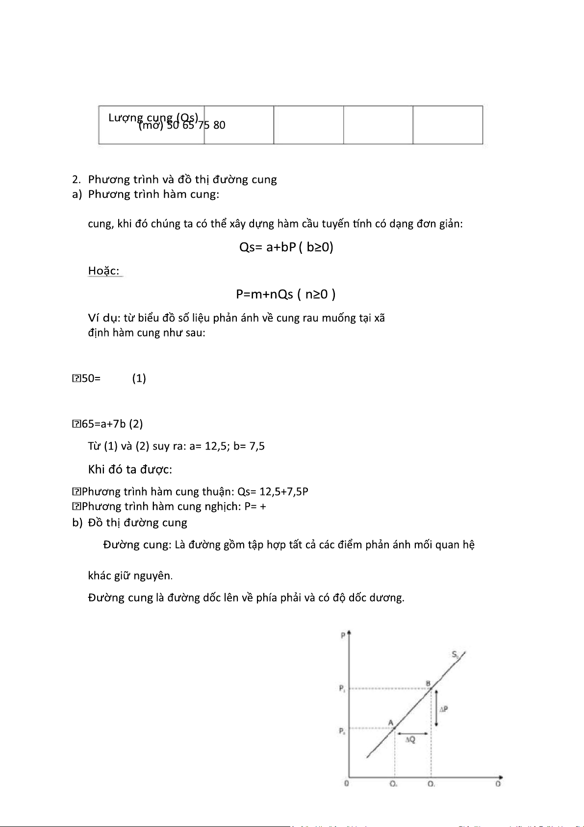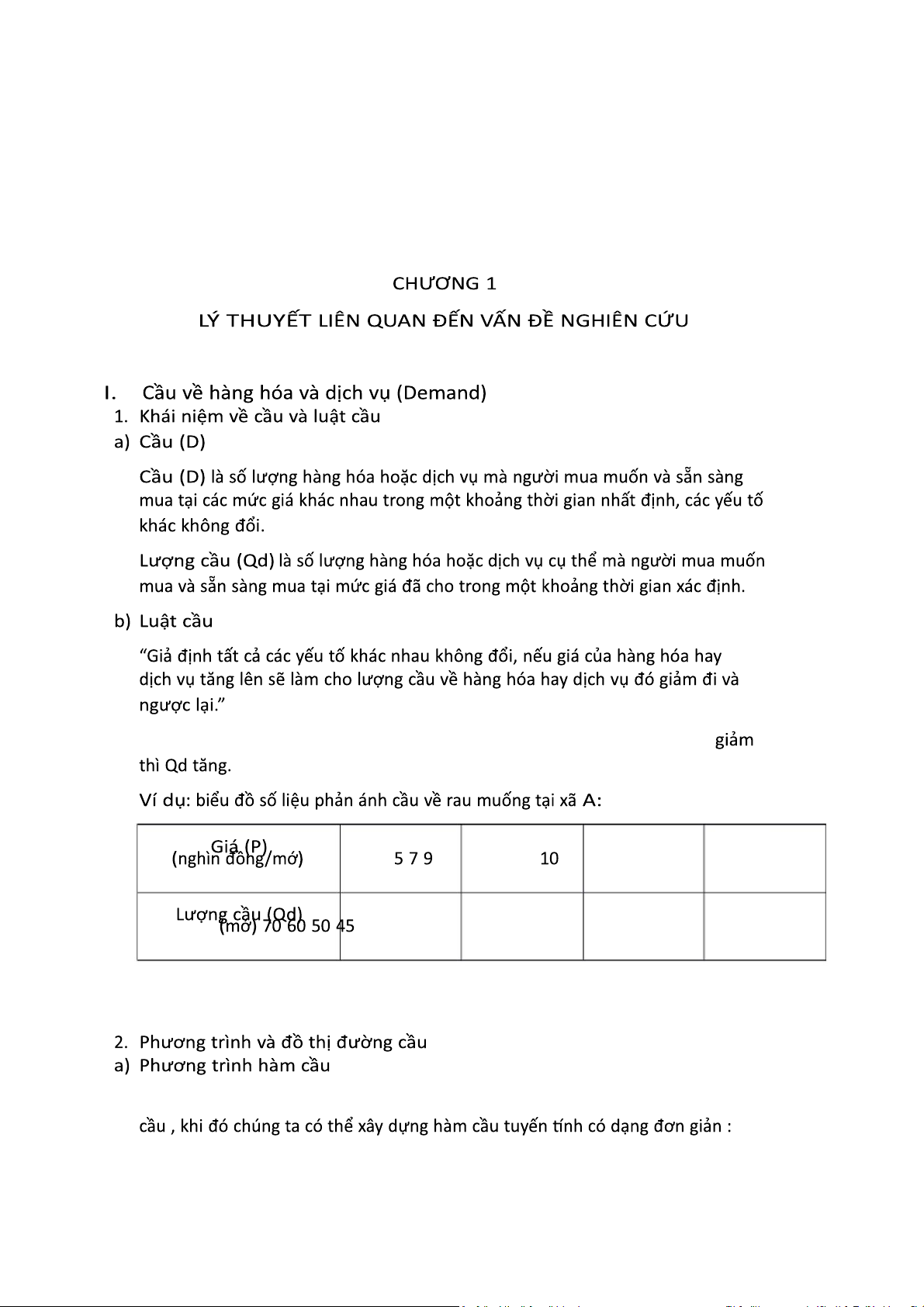 Khi giá rau là 5 nghìn đồng/mớ thì lượng cầu là 50 mớ/ngày a+5b