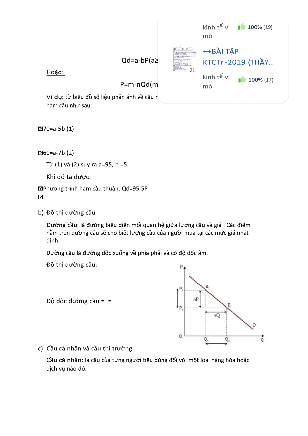 Phương trình hàm cầu nghịch: P=19-0,2Qd
