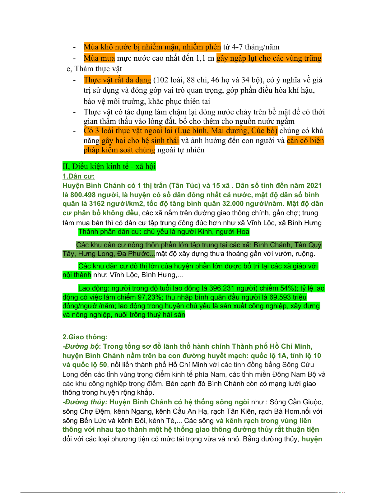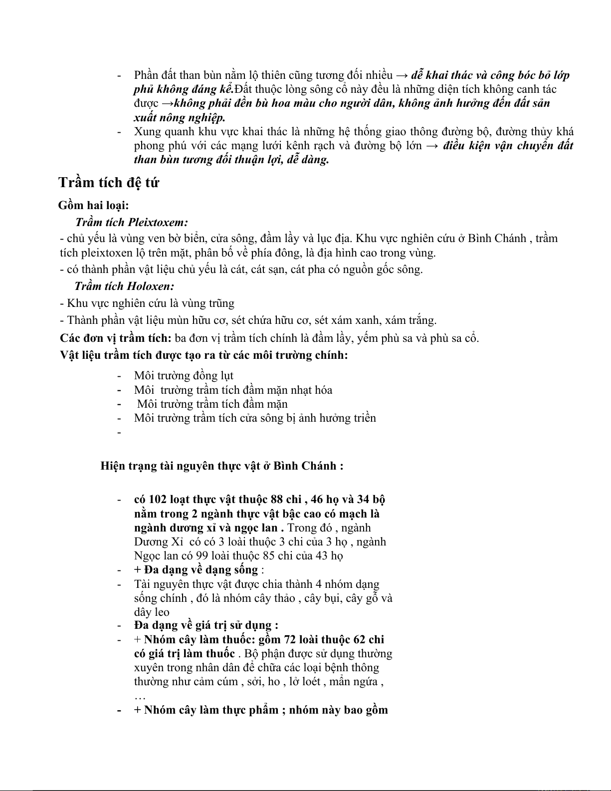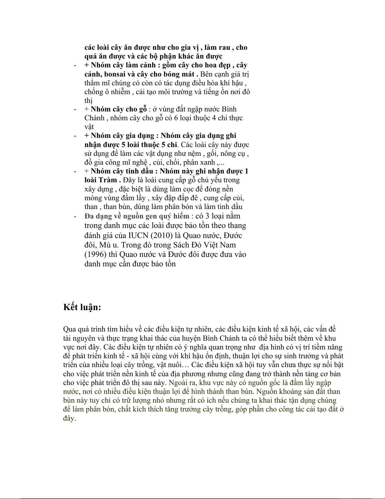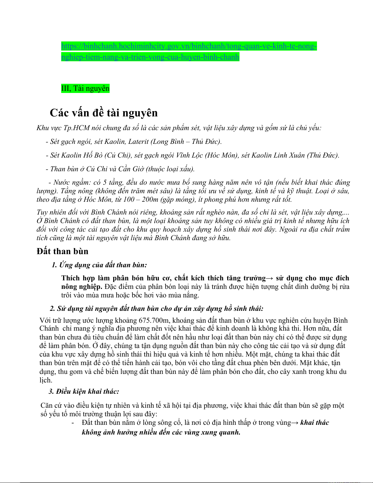tài nguyên và thực trạng khai thác của huyện Bình Chánh ta có thể hiểu biết thêm về khu