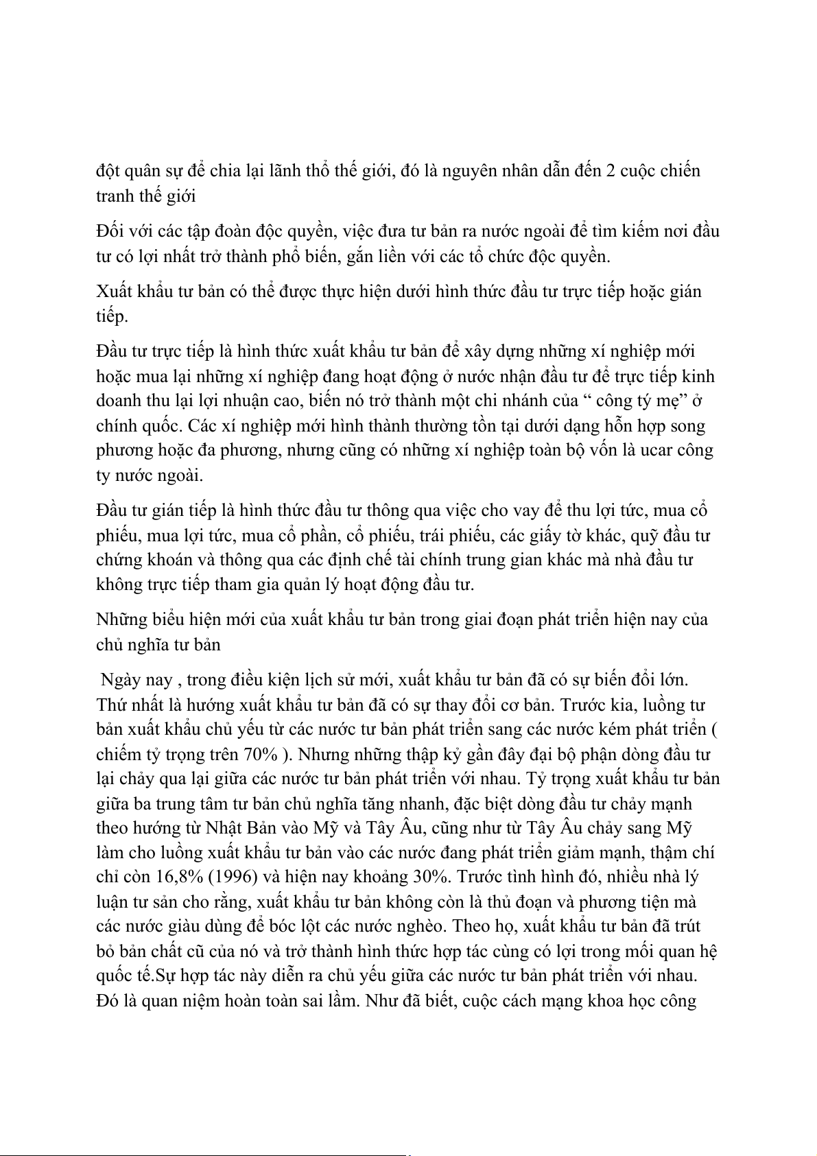 tư bản thay đổi , mà chỉ làm cho hình thức và xu hướng của xuất khẩu tư bản thêm