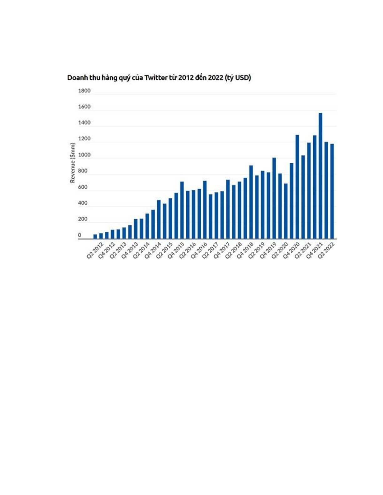 Biểu đồ 1: Doanh thu hàng quý của Twitter từ năm 2012 đến năm 2022 (tỷ USD)