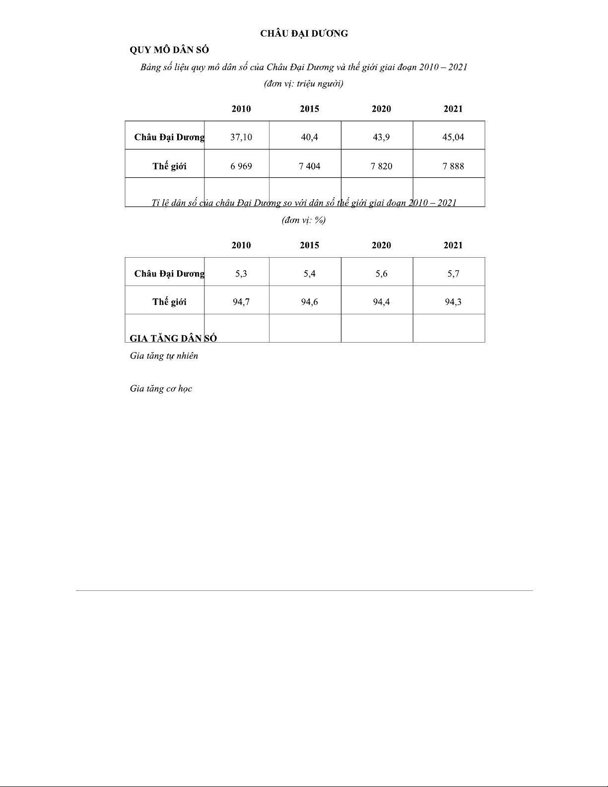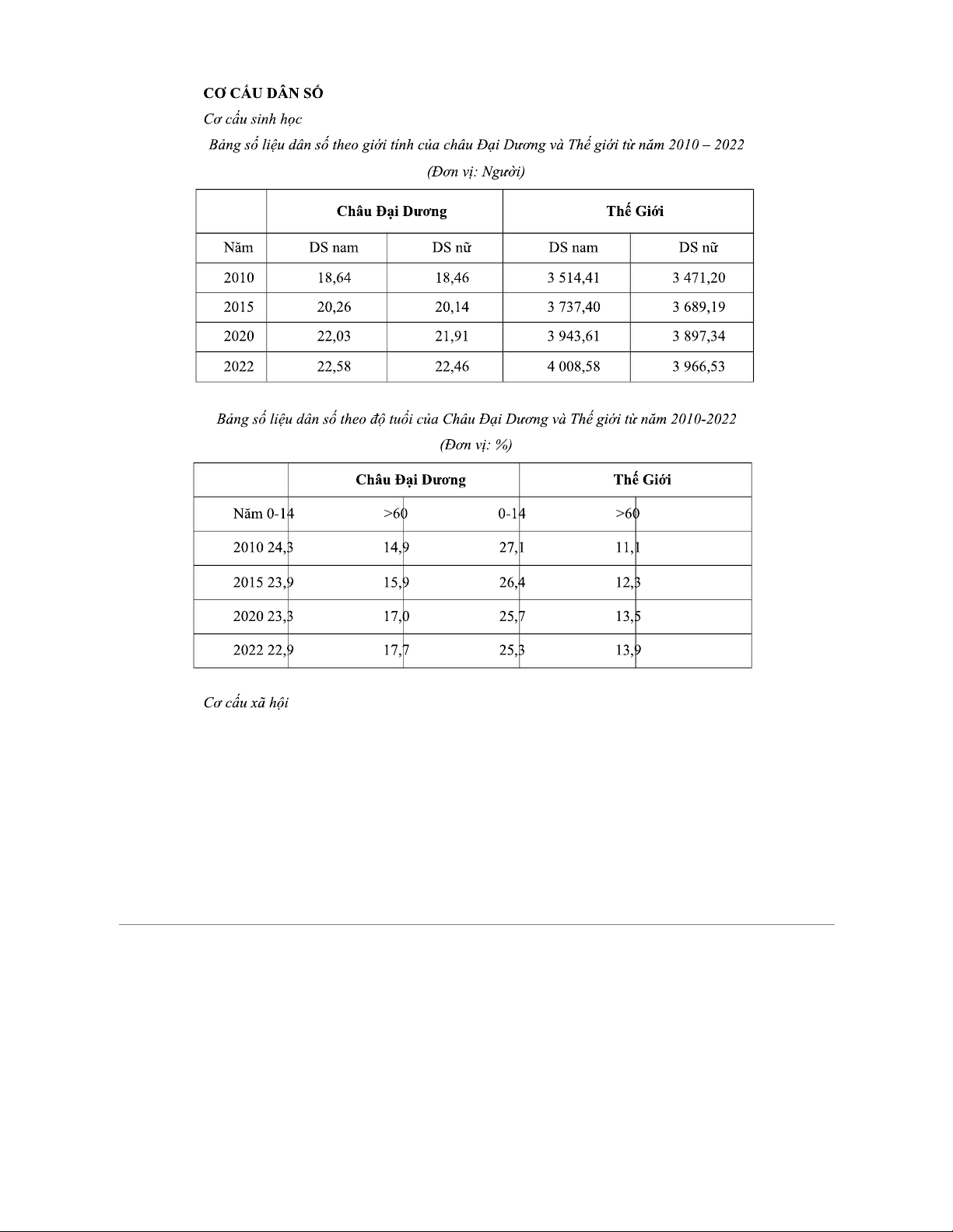 PHÂN TÍCH DÂN SỐ CHÂU ĐẠI DƯƠNG GIAI ĐOẠN 2010 – 2022