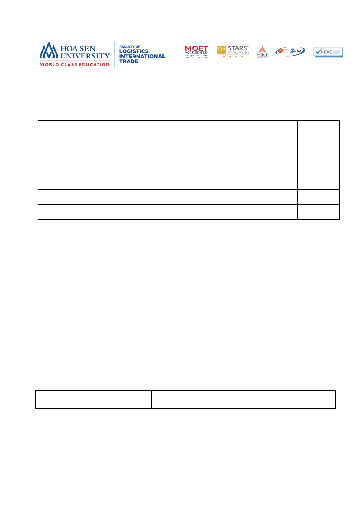 1. Thông tin sinh viên thực hiện STT Họ và tên MSSV Nội dung đóng góp Ký tên 1 Ngô Nhất Phong 22011728 Phần III 2 Lê Bá Toàn 2190201 Phần I 3 Lê Đức Nguyên Khoa 22011156 Phần II 4 Âu Trần Thanh Trúc 22005784 Phần V 5 Đặng Hoàng Ngọc Nhi 22002006 Phần II 7 Vũ Nguyễn Thanh Vy 22013470 Phần IV