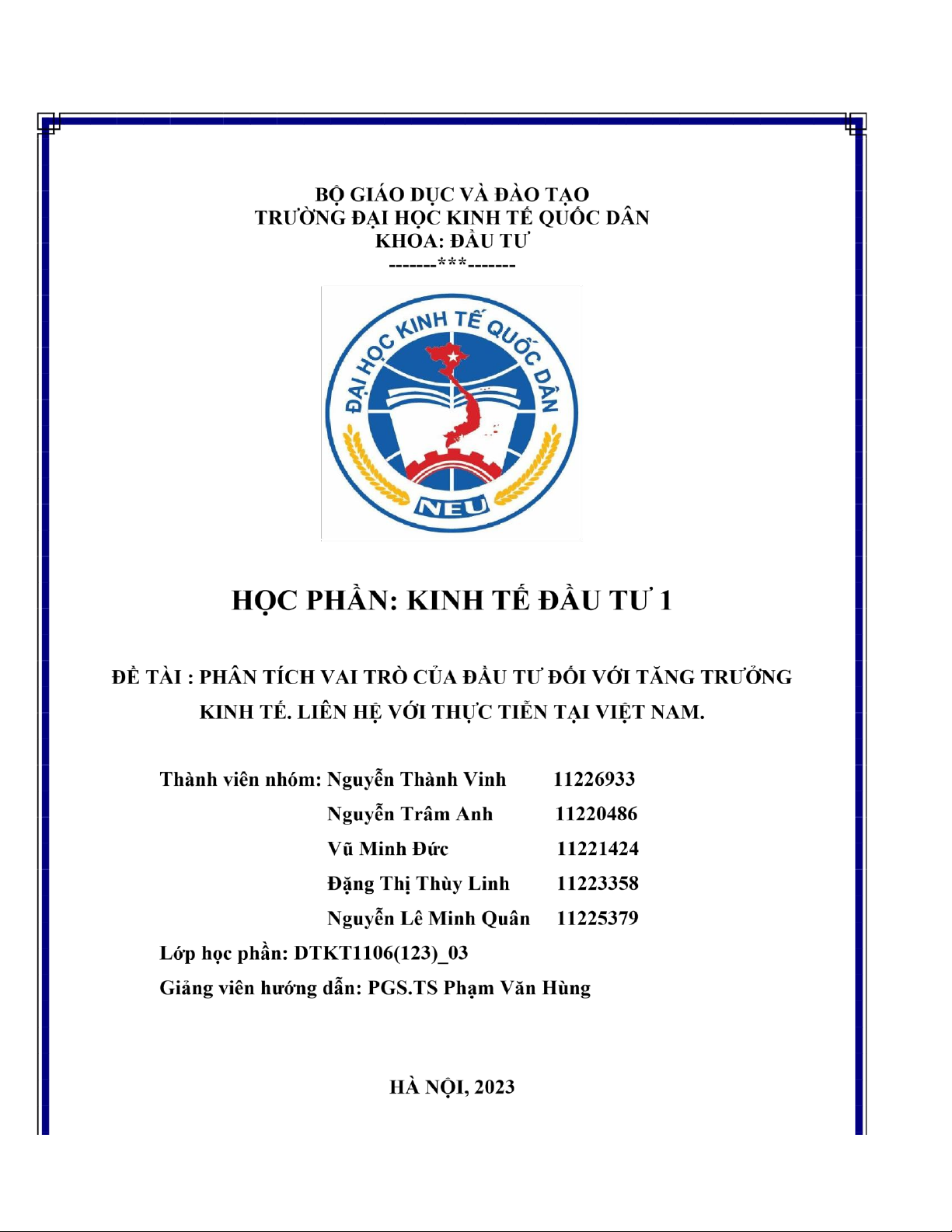V. VAI TRÒ CỦA ĐẦU TƯ ĐỐI VỚI TĂNG TRƯỞNG KINH TẾ TẠI VIỆT ...... 14