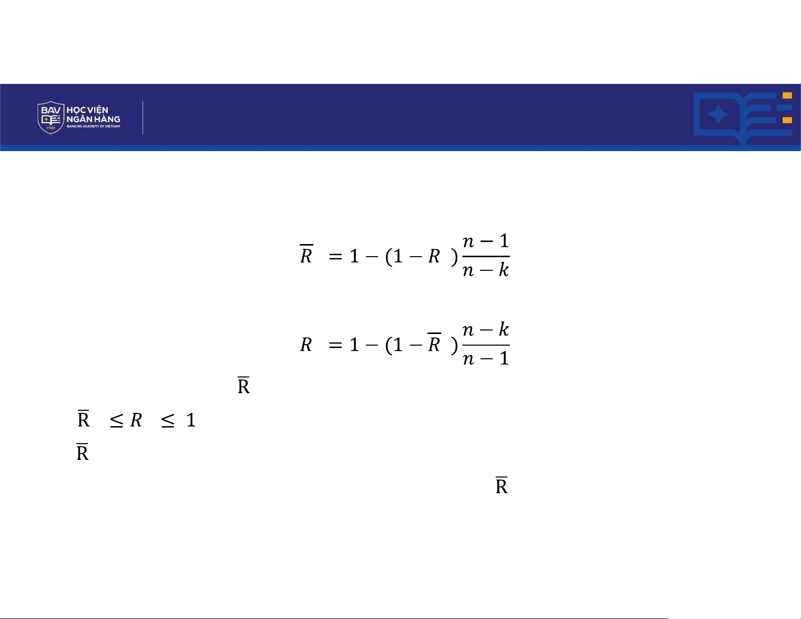 Hệ số xác định điều chỉnh được tính như sau: Do đó: Các tính chất của : 1. 2 2.