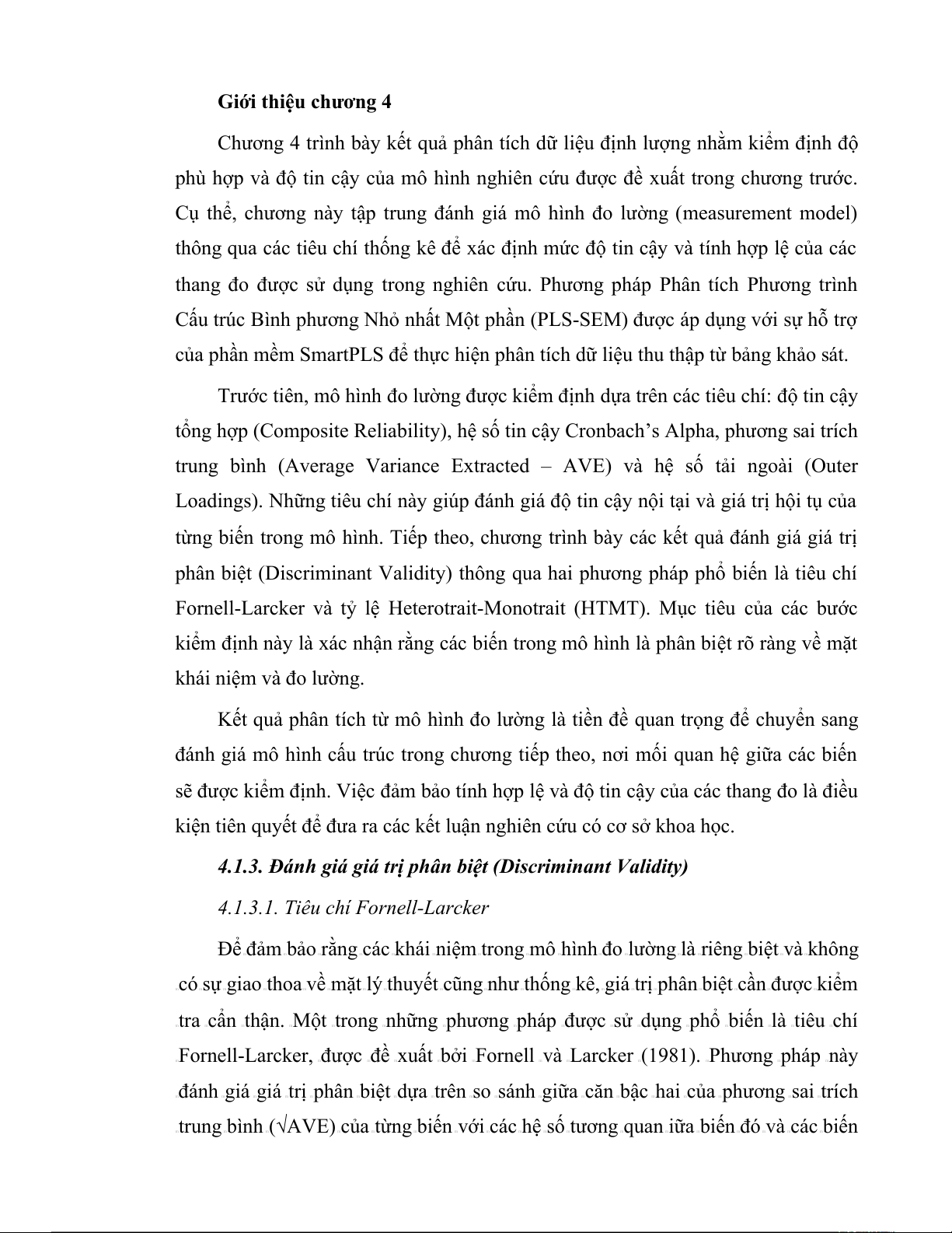 bày tại Bảng 4.1. Trong ma trận này, các giá trị đường chéo chính là √AVE, trong m m m m m m m m m m m m m m m m m