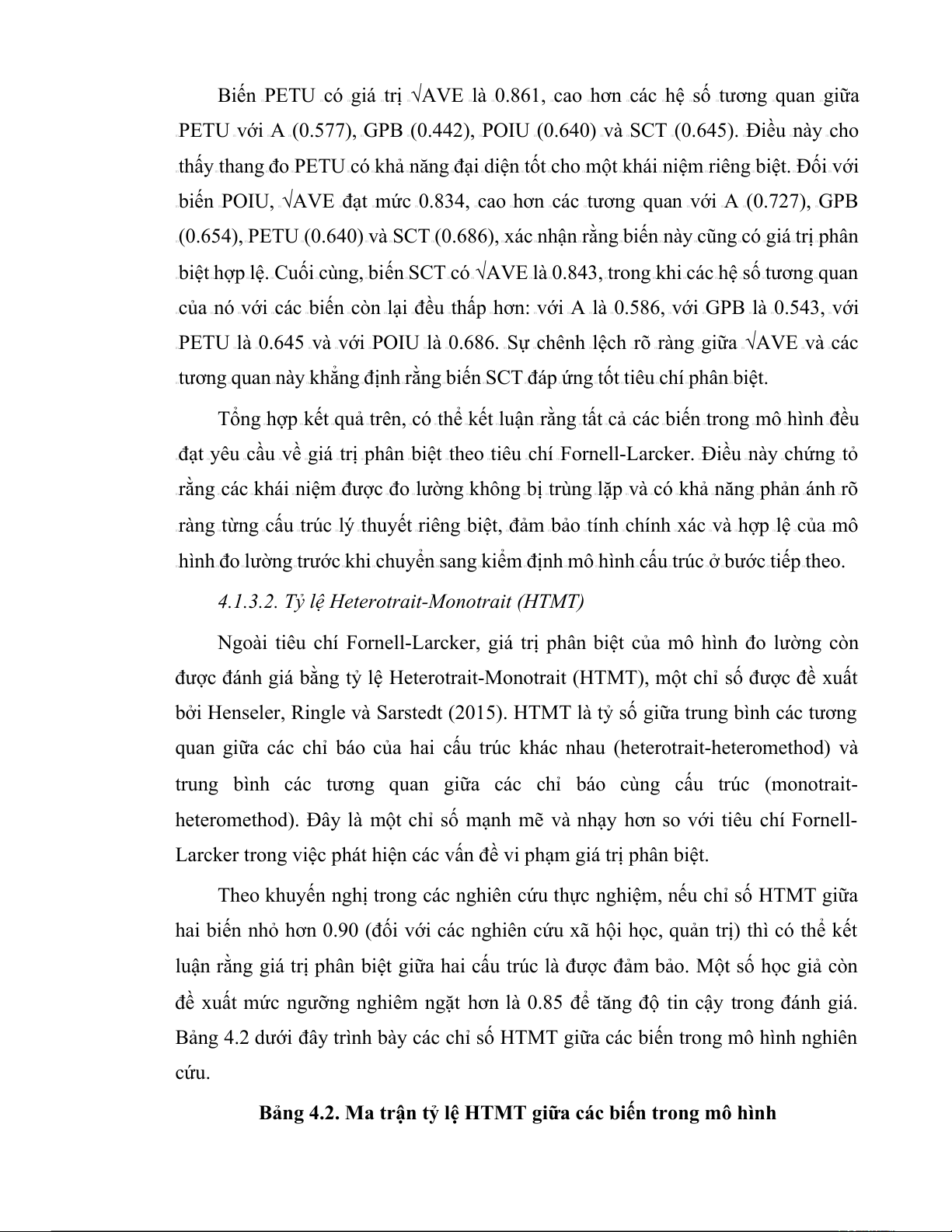 HTMT là 0.735 với POIU và 0.763 với SCT, đều đạt chuẩn. Trong khi đó, mối m m m m m m m m m m m m m m m m