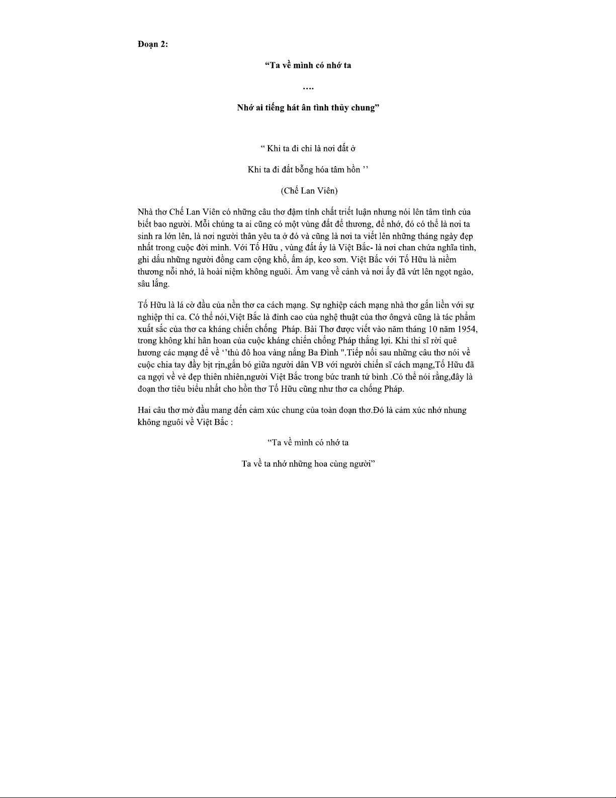 Phân Tích Đoạn 2 Thơ Tố Hữu Trong Tác Phẩm Việt Bắc