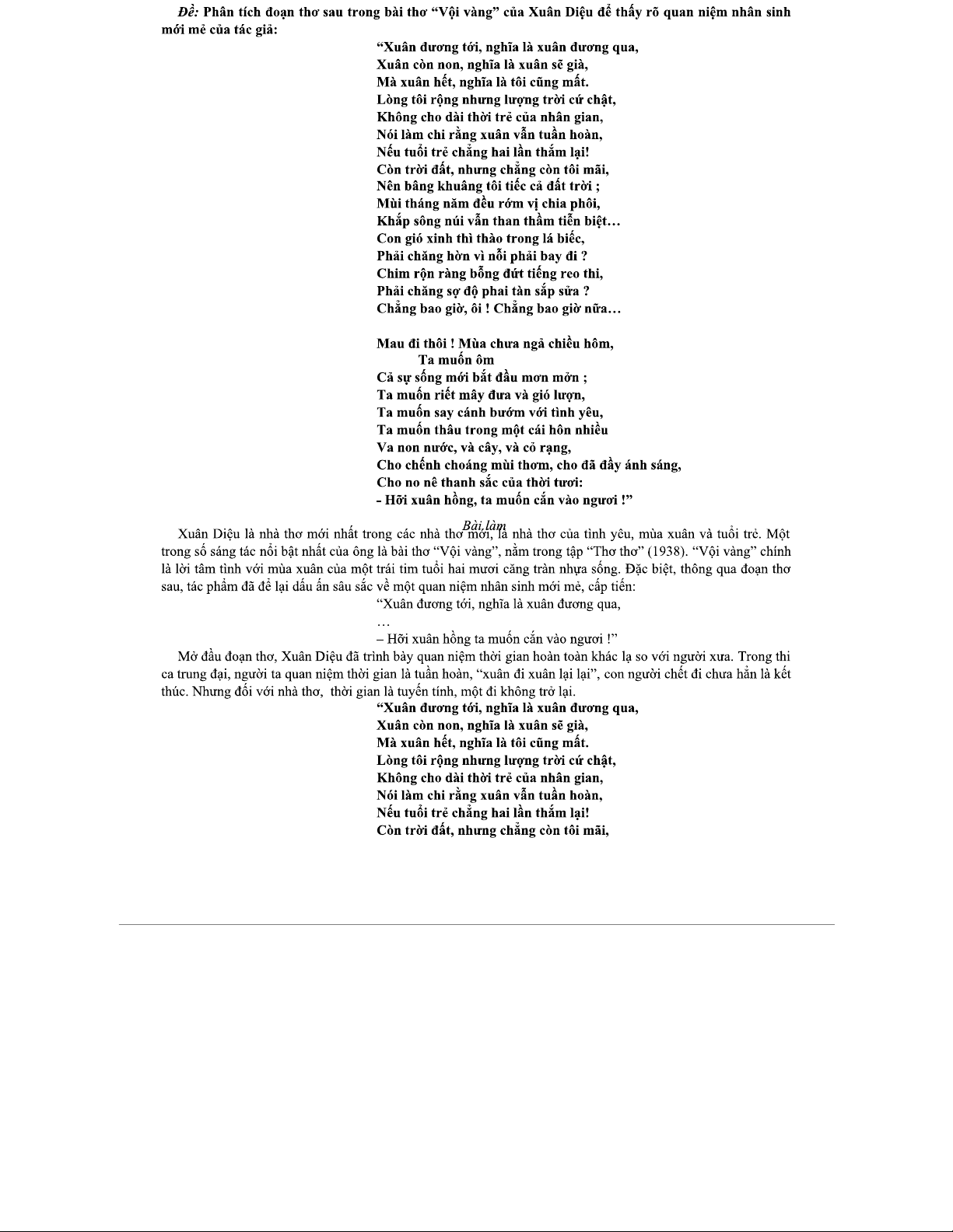 Phân Tích Đoạn Thơ “Vội Vàng” (Đề Xuất 26 Câu) - Xuân Diệu