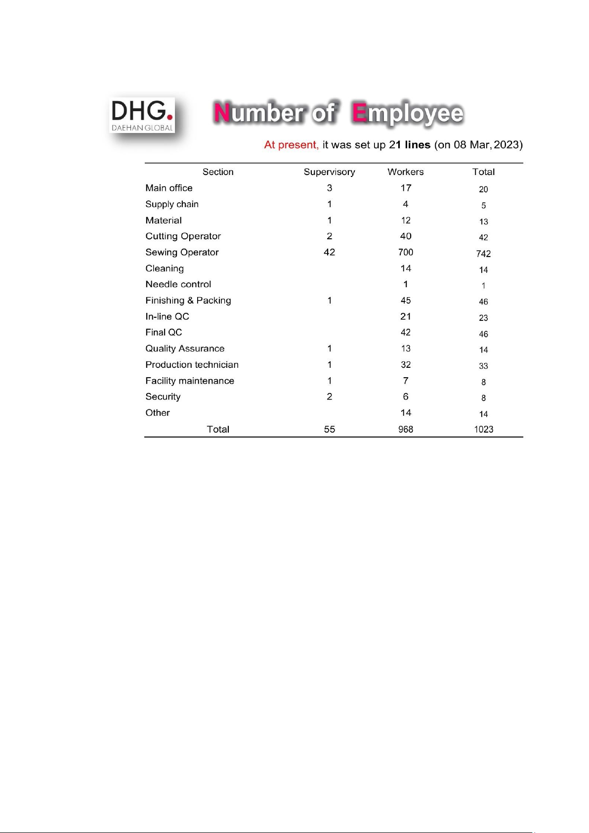 Cơ cấu lao động công ty cổ phần PT Daehan Global Yên Dũng
