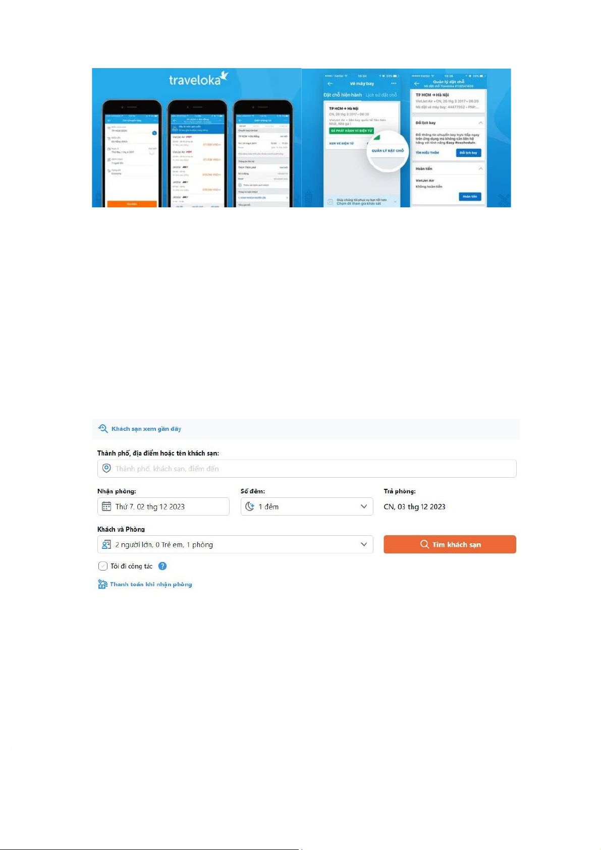 - Traveloka cung cấp dịch vụ đặt phòng khách sạn của hơn 1 triệu khách sạn trên