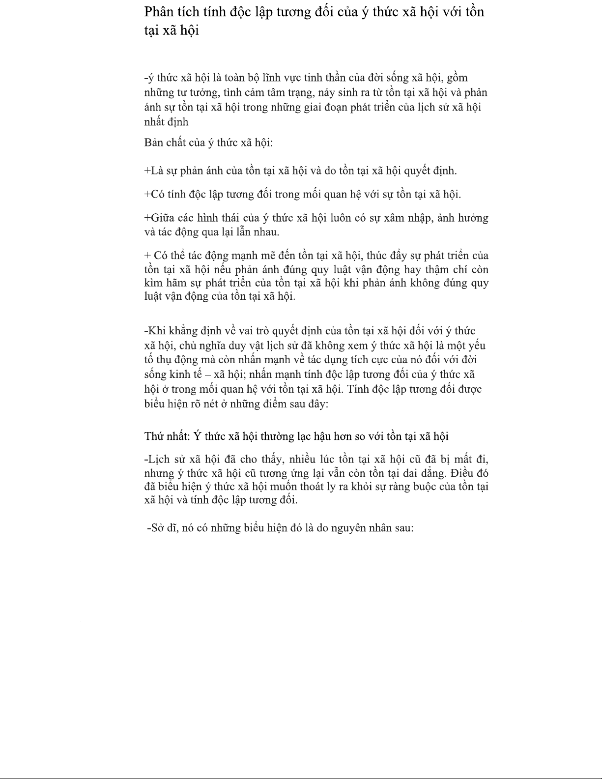 Phân tích độc lập giữa ý thức xã hội và tồn tại xã hội