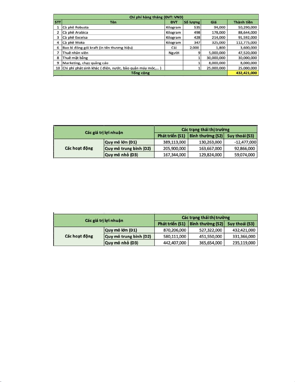 II. Phát triển bảng Payoff lợi nhuận và chi phí. ...................................... 14
