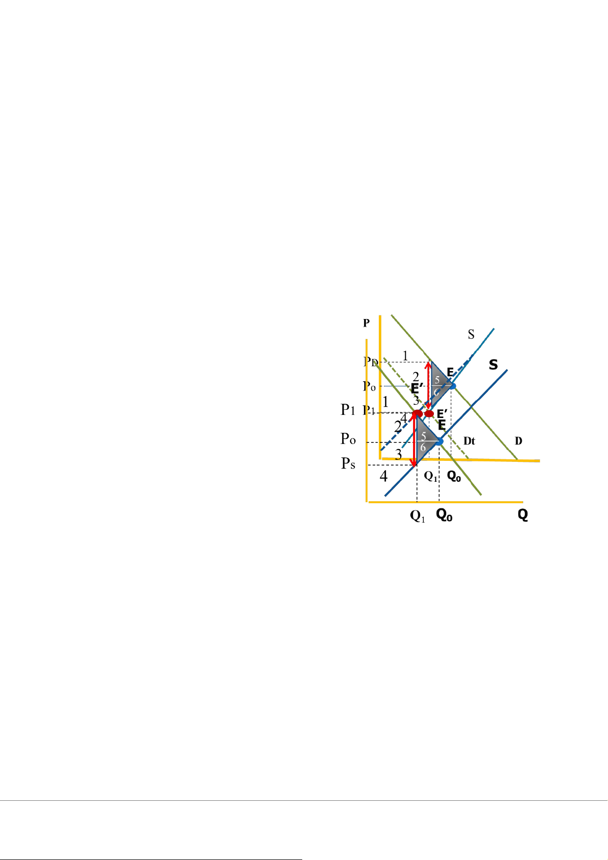 -Thị trường dự thừa hàng hóa -tác động: 1SurH K S PF Tại E: plus - Cs = (1) +(2)+(4) 2 4 - Ps = (3) +(5) P - TSB =(1,2,3,4,5) 3 5 E Tại F (H): - Cs =(1) 0 - Ps =(2) +(3) D - TSB =(1,2,3) TSB = (4,5) = DWL