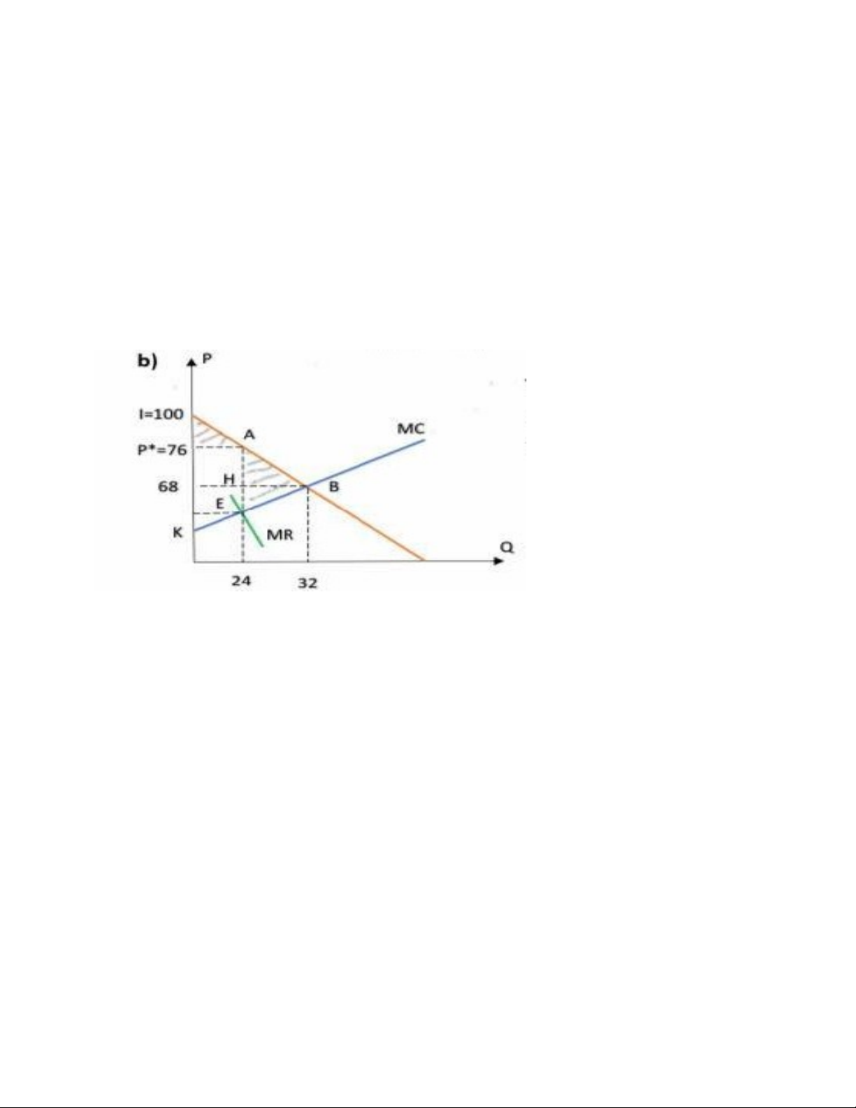 the demand curve and expand the output to ( where MC = P) so the price in this situation is P = 100 - = 68$