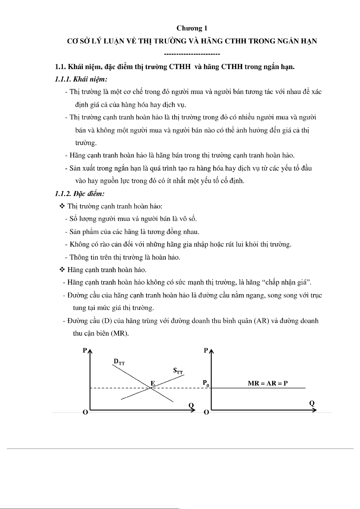 Chương 1: CƠ SỞ LÝ LUẬN VỀ THỊ TRƯỜNG VÀ HÃNG CTHH TRONG NGẮN HẠN
