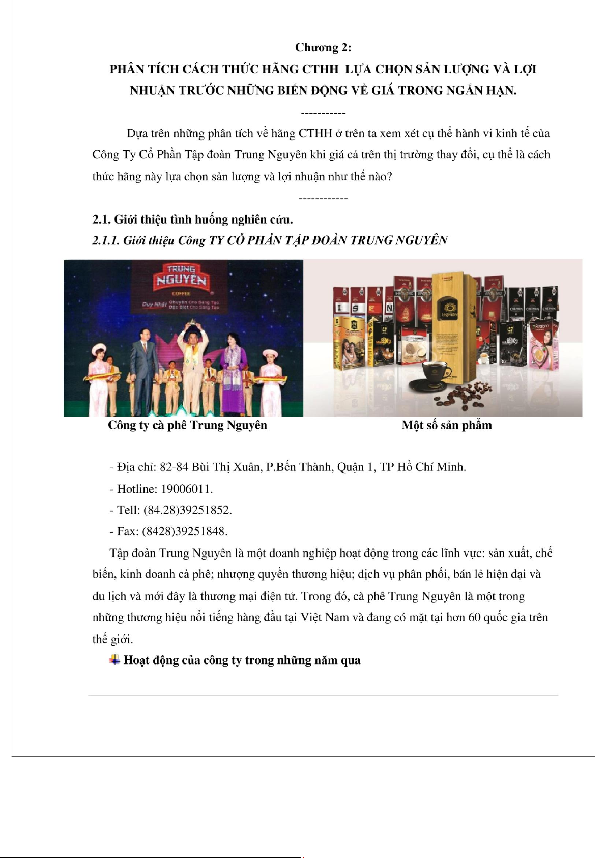 Chương 2: PHÂN TÍCH CÁCH THỨC HÃNG CTHH LỰA CHỌN SẢN LƯỢNG VÀ