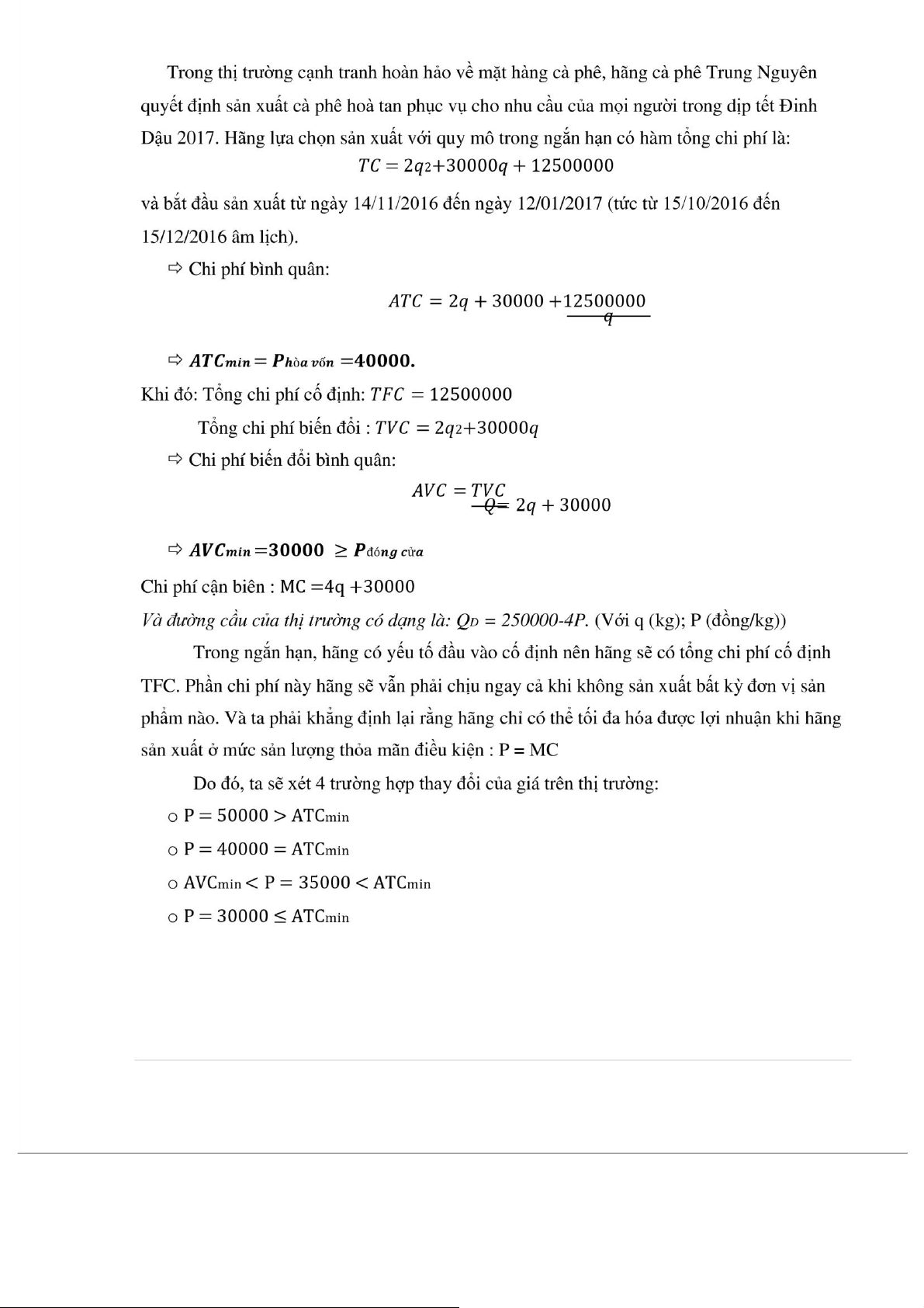 khi ATC = MC P P, R, C, ATC MC B A AVC E a 0 Q 8 | P a g e 1.
