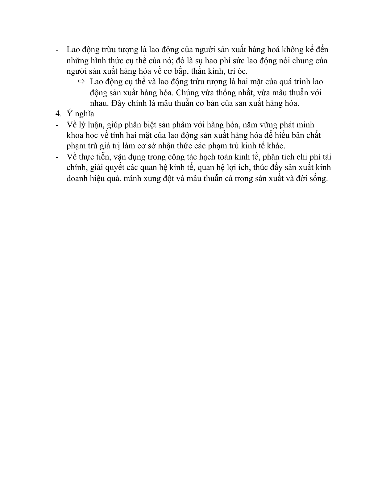 Hai mặt của lao động sản xuất hàng hóa là lao động cụ thể và lao động trừu tượng