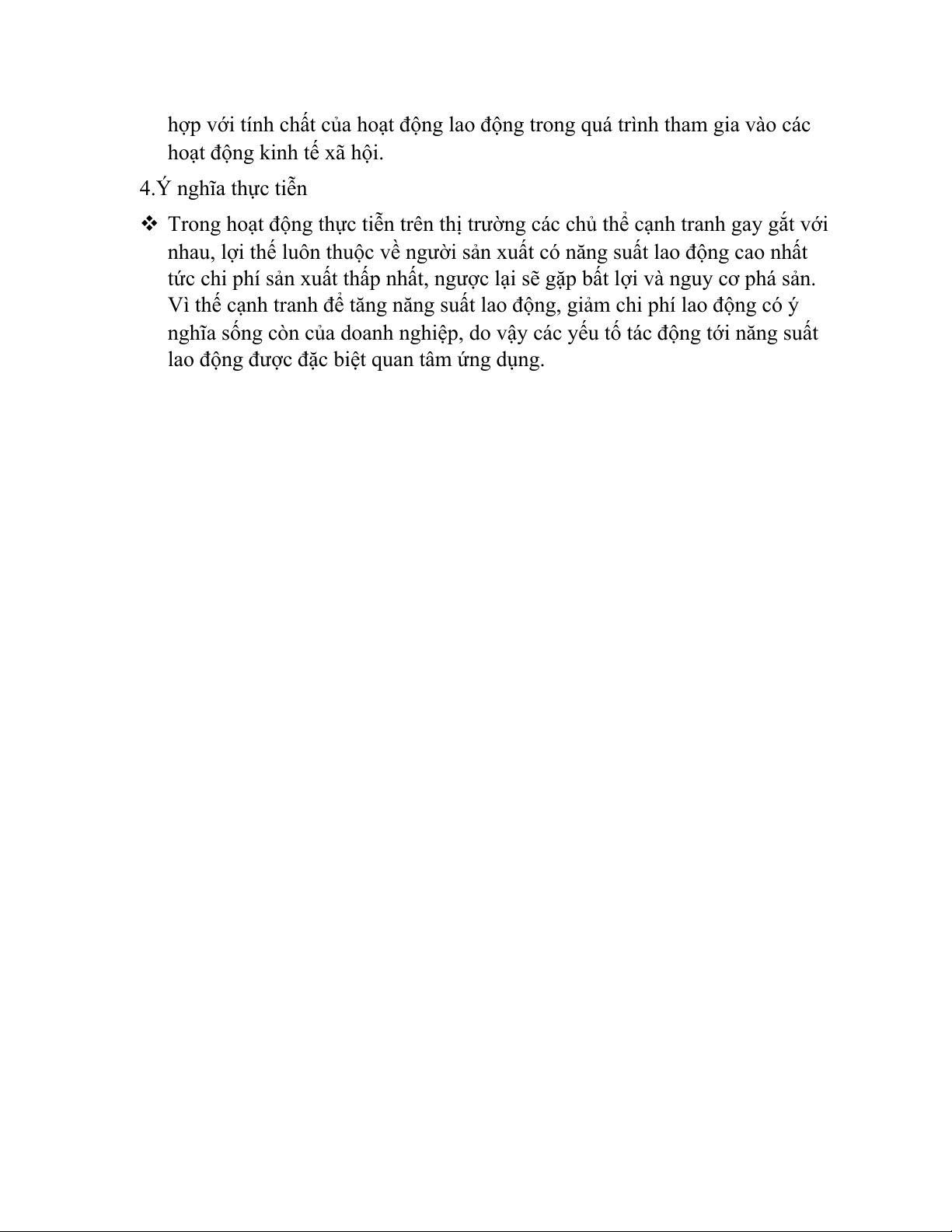 tăng năng suất lao động, sẽ làm giảm lượng thời gian hao phí lao động cần
